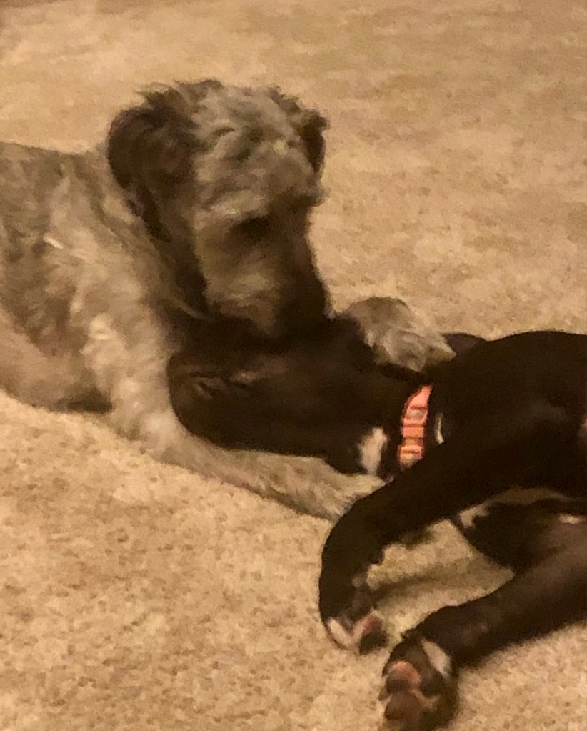 This must immediately be followed by a trip to the yard. Since it’s pitch black I’m left inside as Ma says she can’t walk two dogs till it’s light.