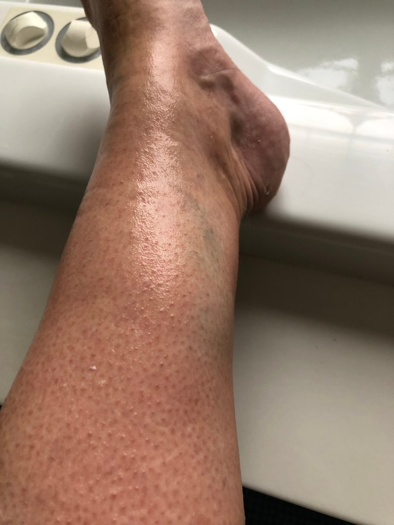 The wrinkled ones leg is less swollen than it was but is beautifully colored.
