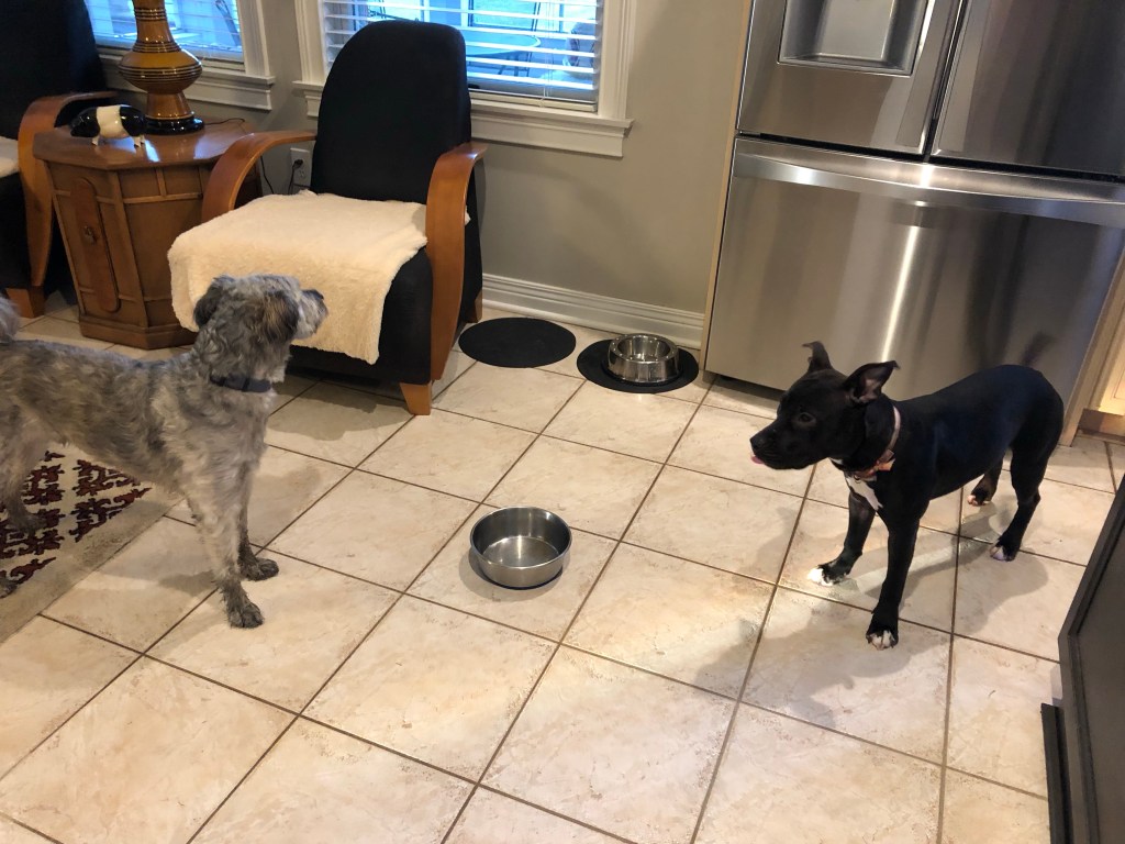 We had a stand off over the food bowl as usual but none was added to it. We had to beg.