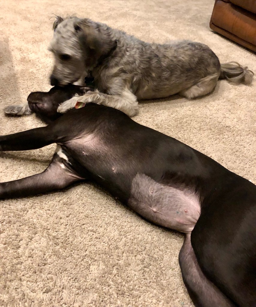 After fighting some we decided to sleep as Dad doesn’t like taking care of us especially if we are having a run around. He gets grumpy.