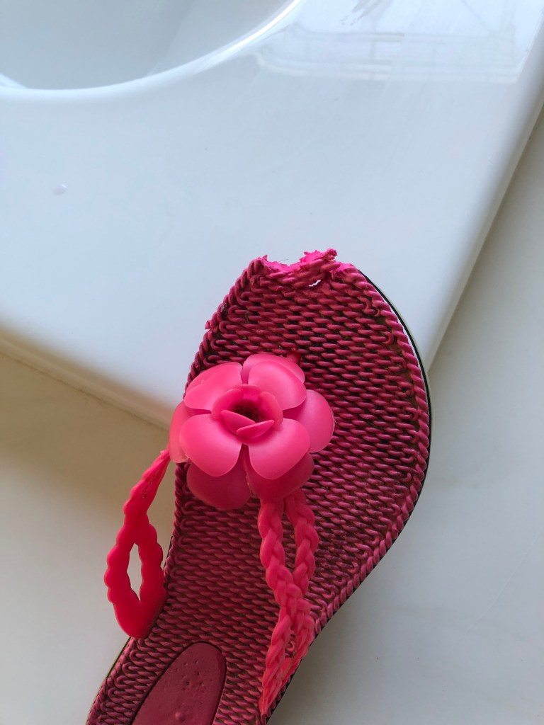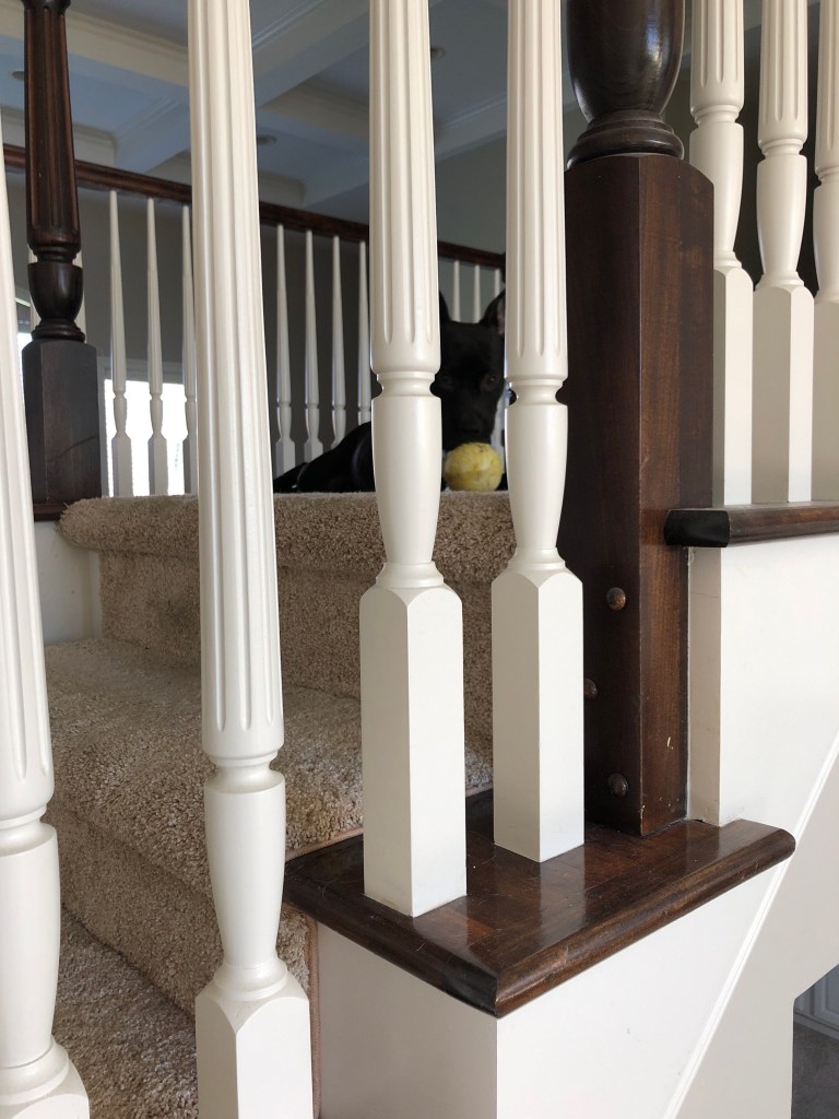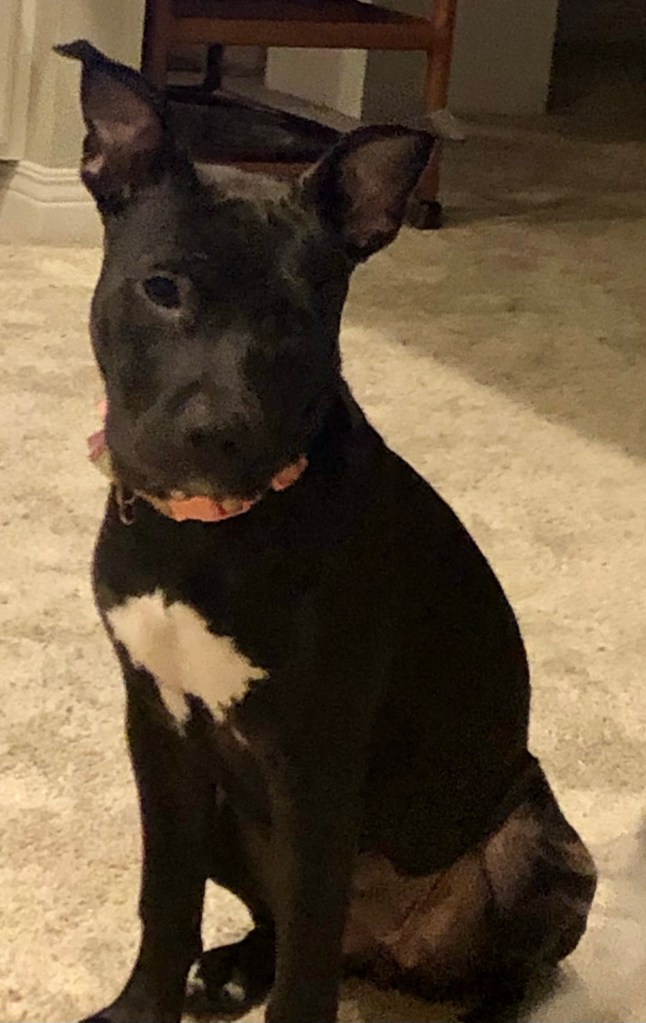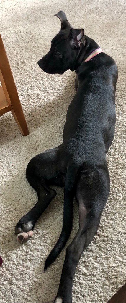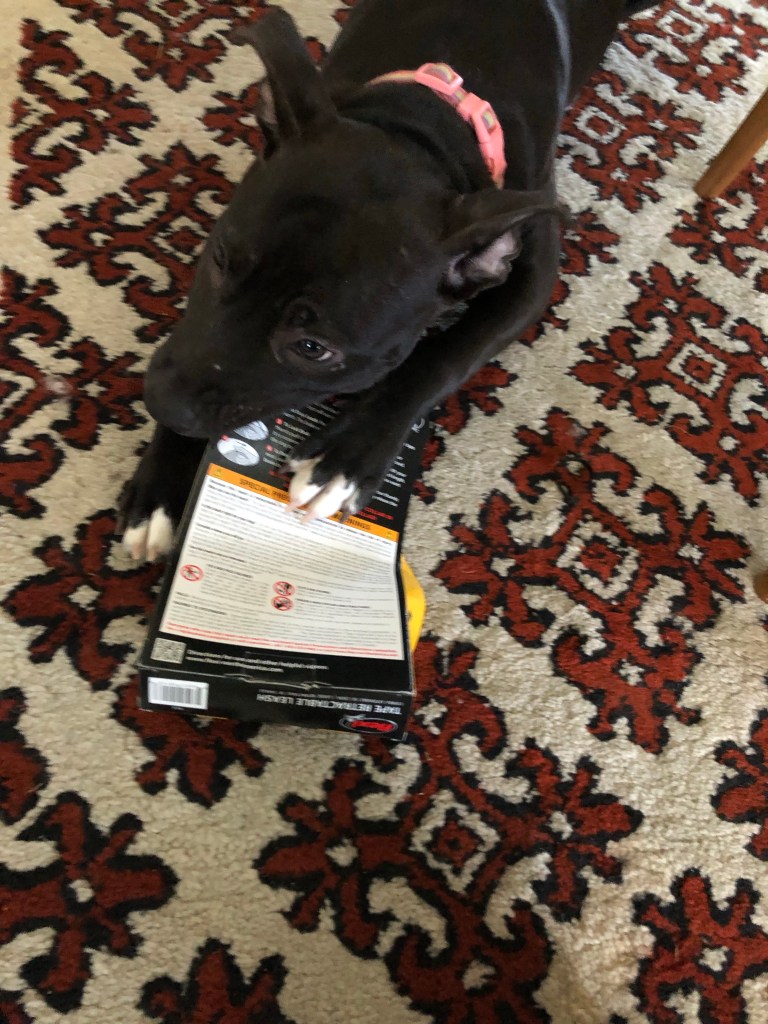 Mega Mouth so far this morning has destroyed my Mum’s favorite flip flop and my bro’s favorite hat. She has currently taken off to the top of the stairs for some quiet time to demolish a baseball.
