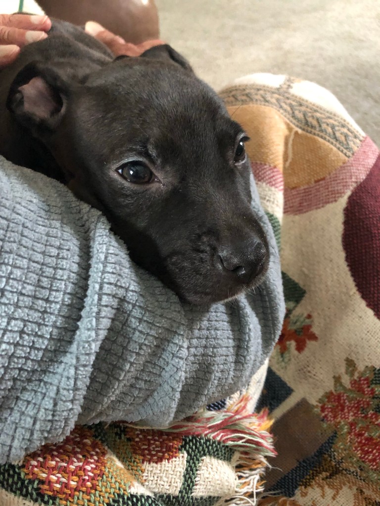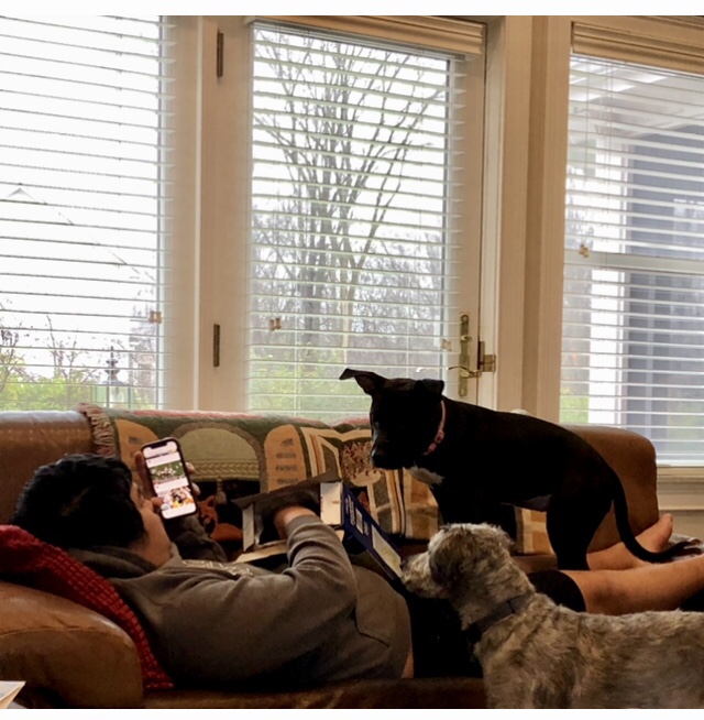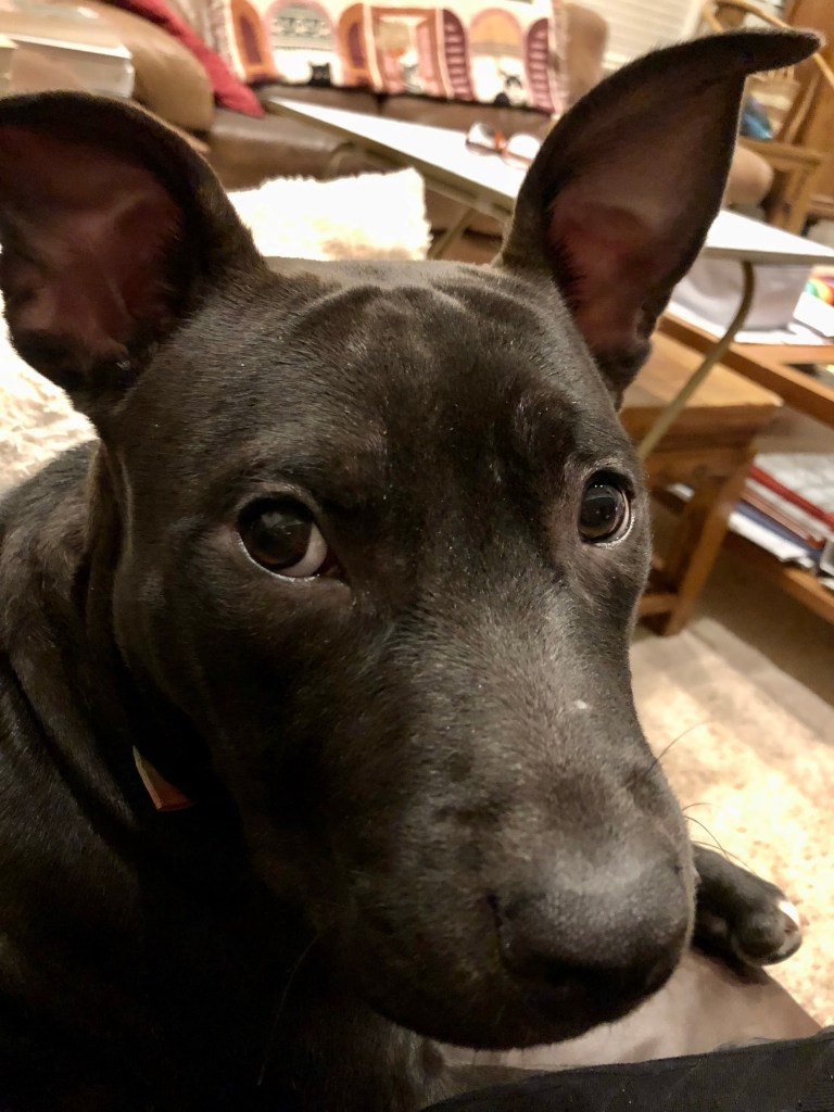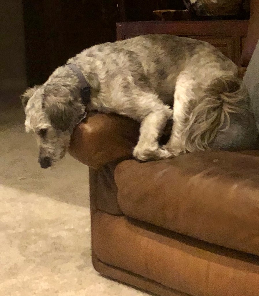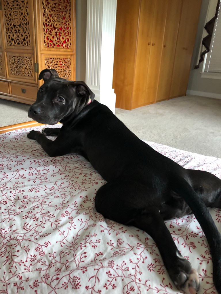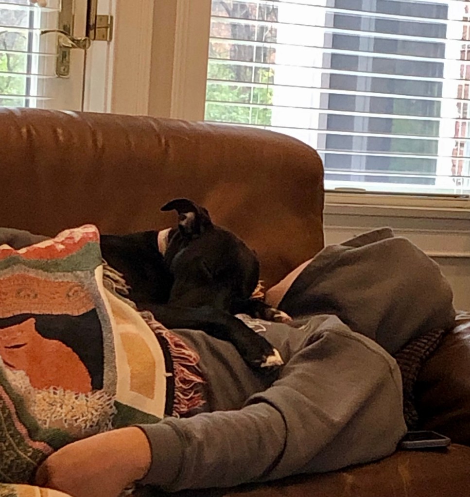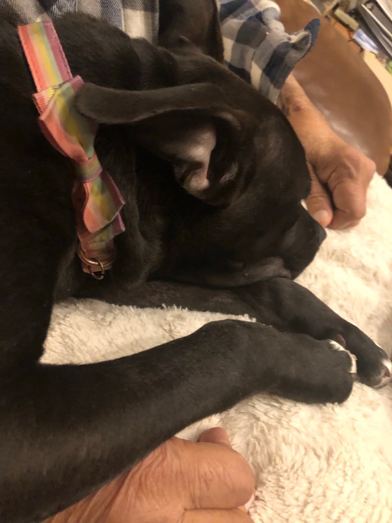 The niece was nicely chilling and quiet after having had her kibble and a quick outing so Ma decided to leave her with me and Dad. Ma just hadn’t the heart to lock her up again.
