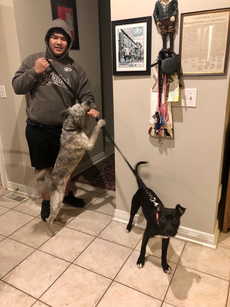 Secretly we are happy to have these new gizmos because our old leashes were way to short and no fun at all.