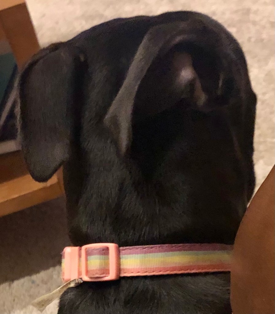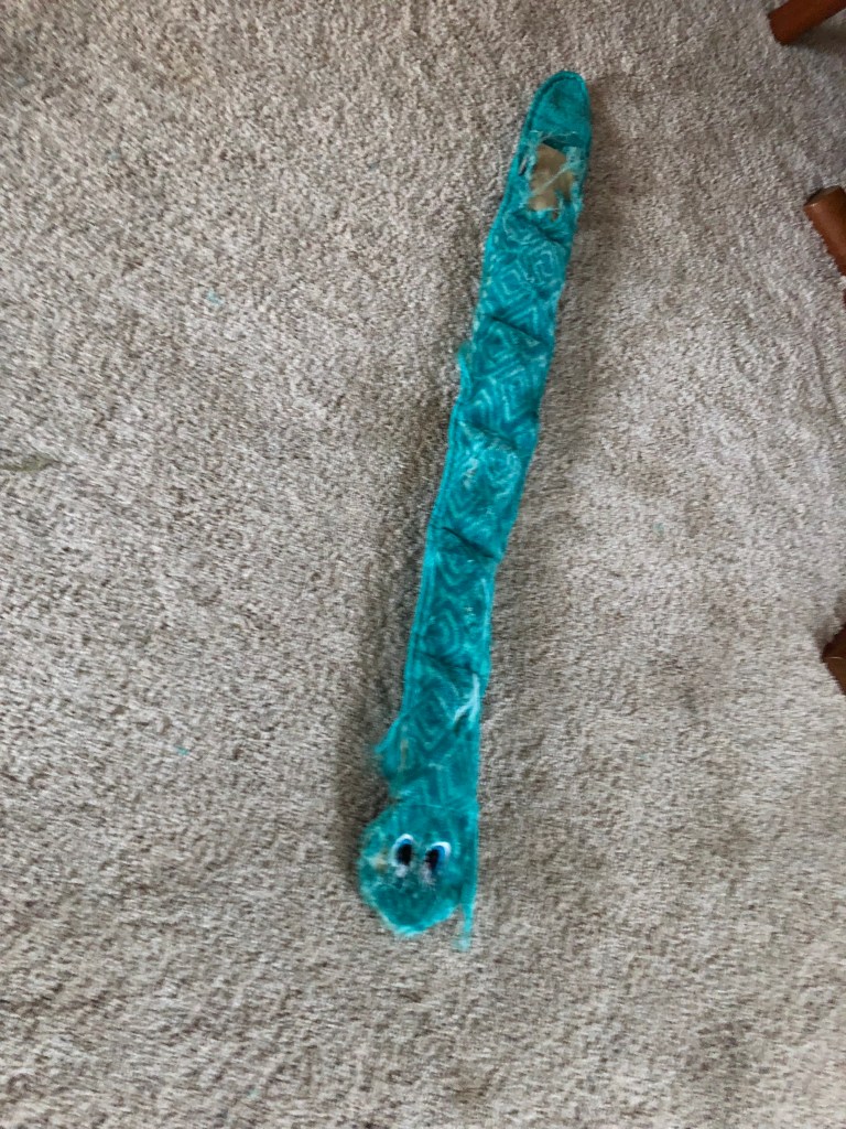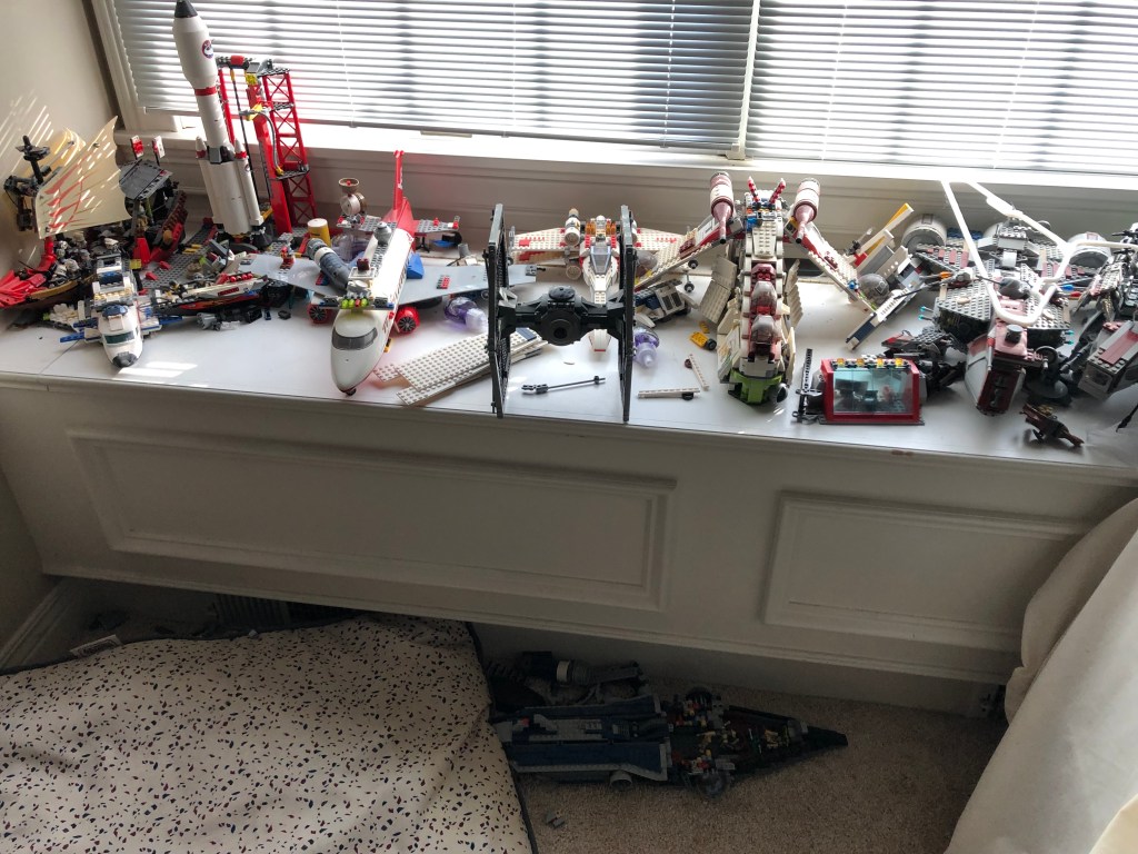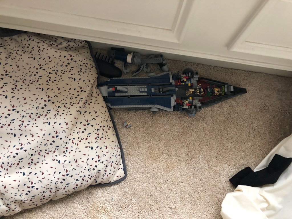 While he slept overnight she chewed up part of his lego star wars pieces that he had made over the years and that take pride of place in his room.