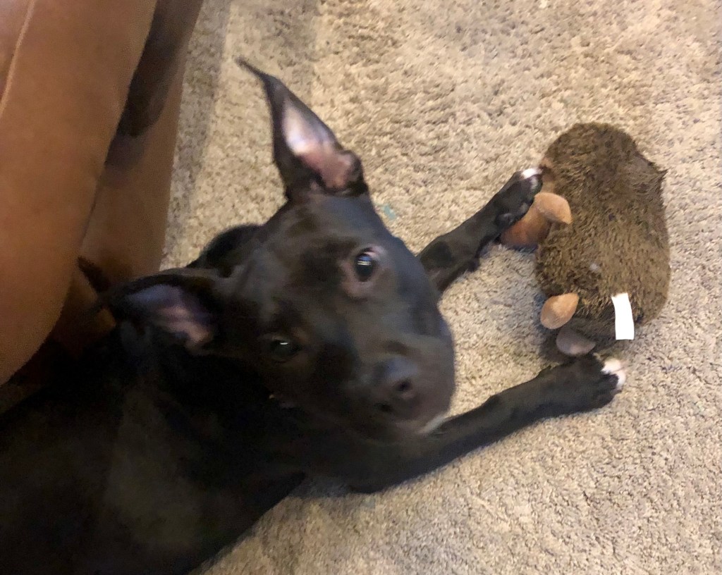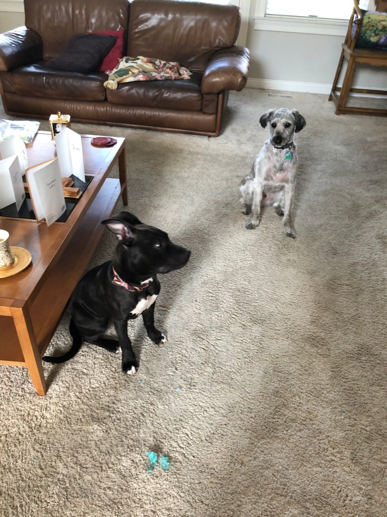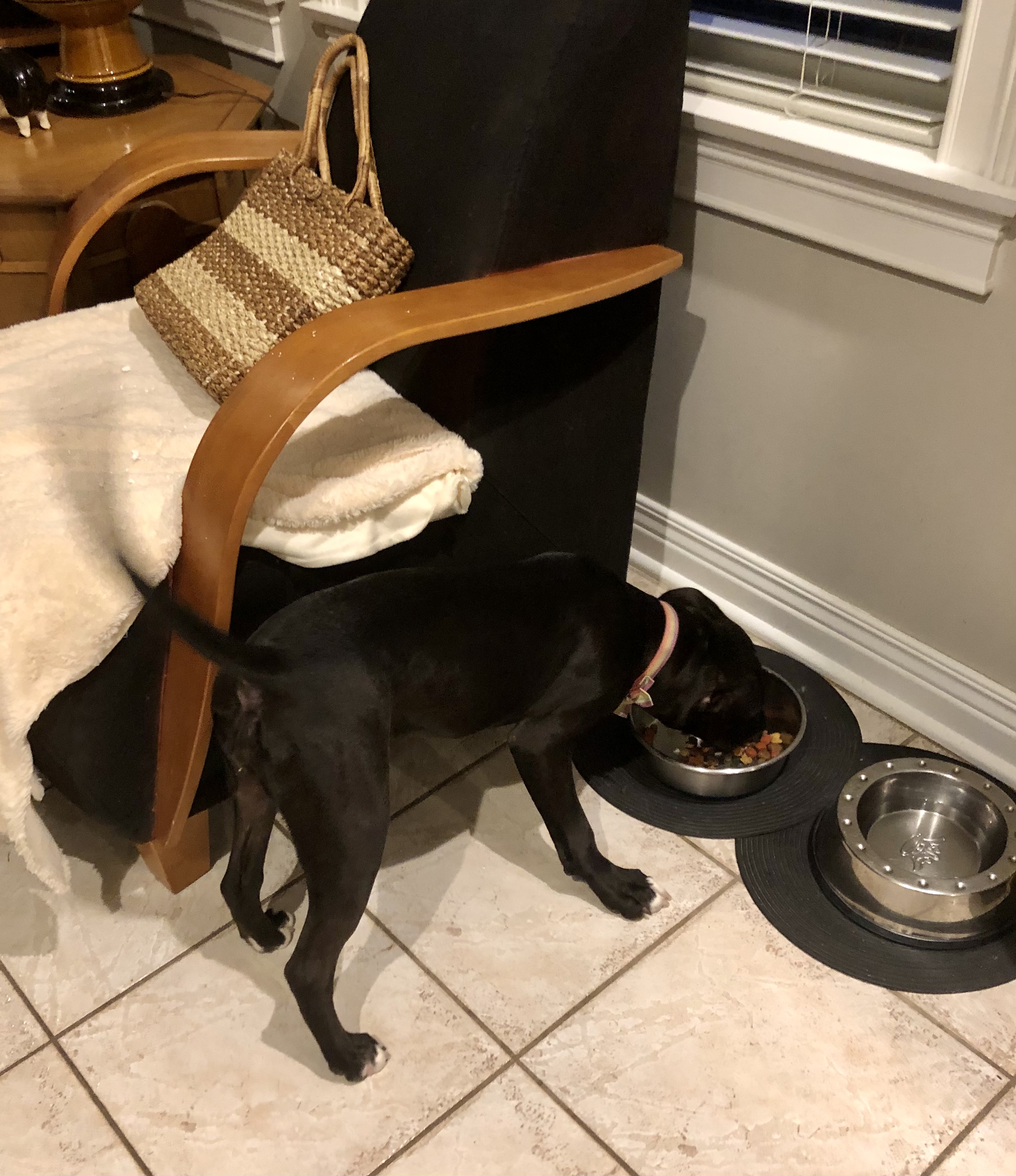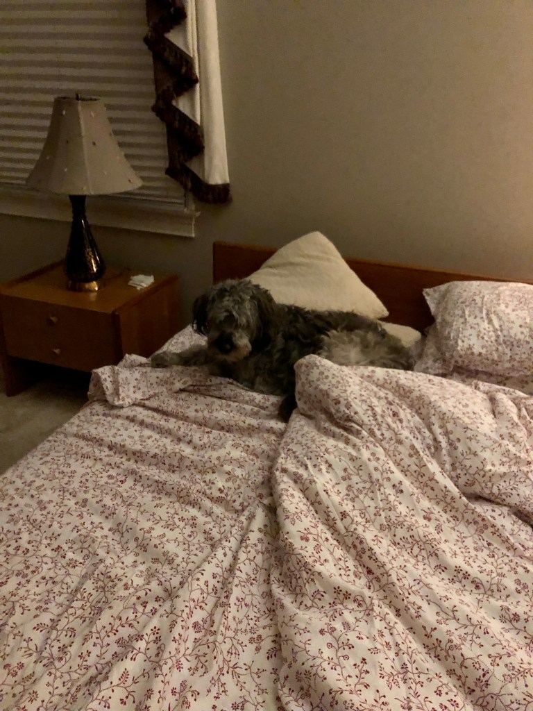 While he slept overnight she chewed up part of his lego star wars pieces that he had made over the years and that take pride of place in his room.