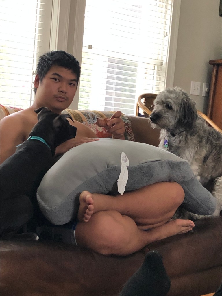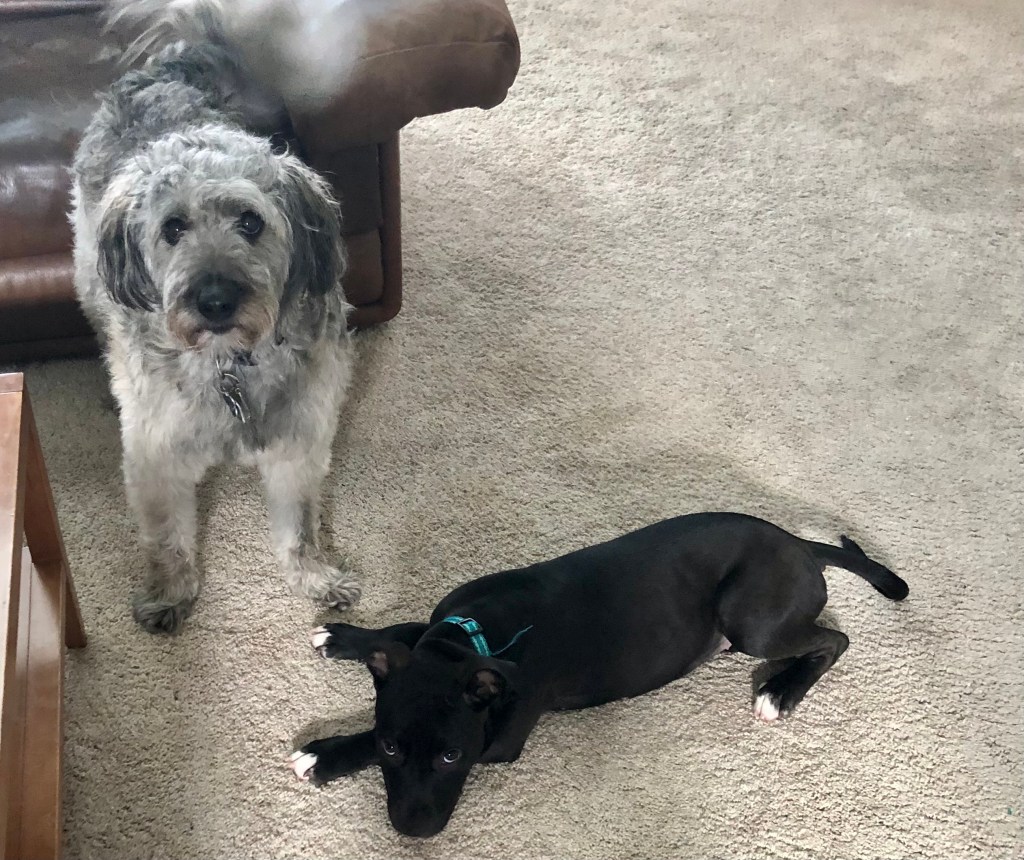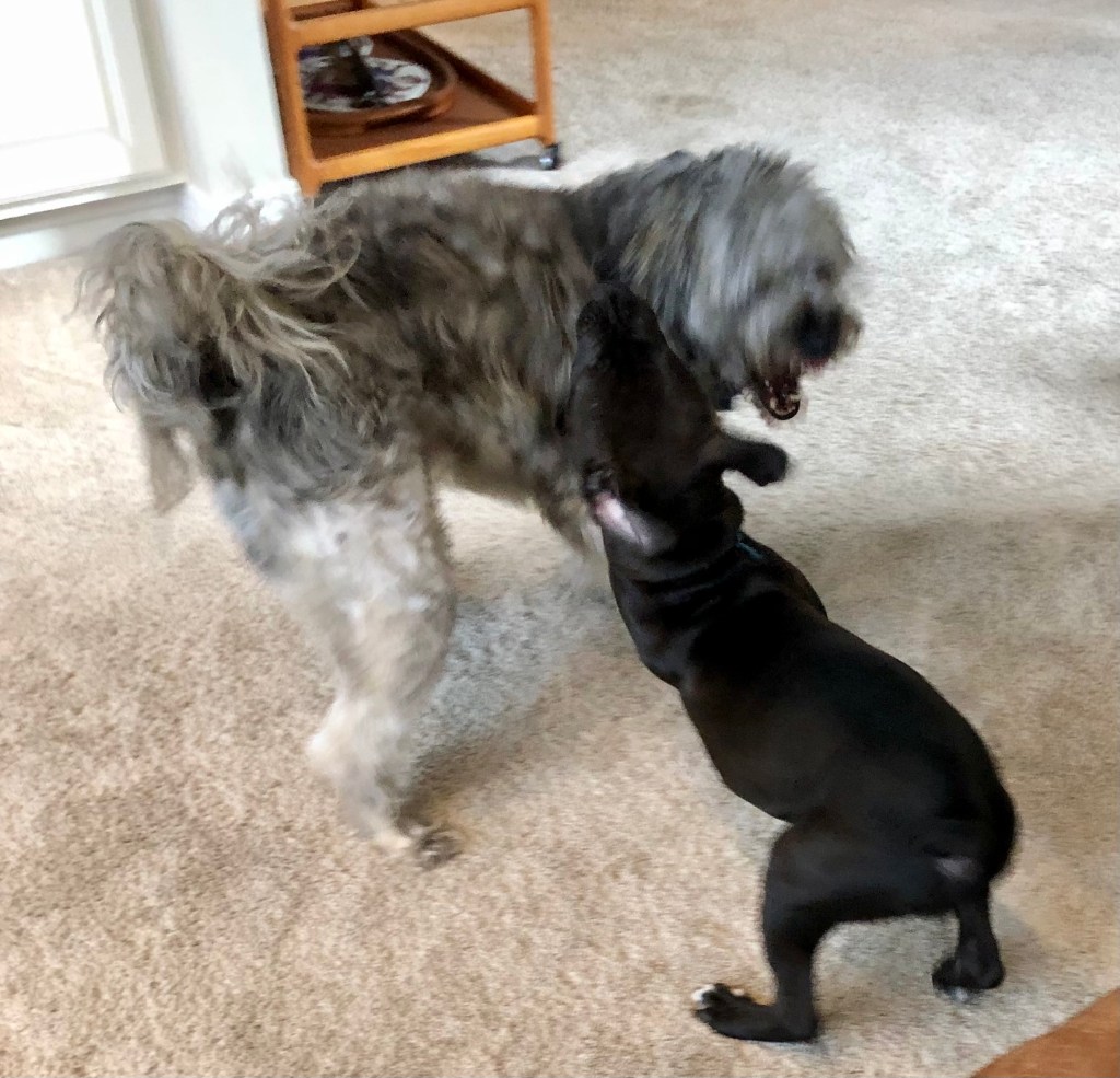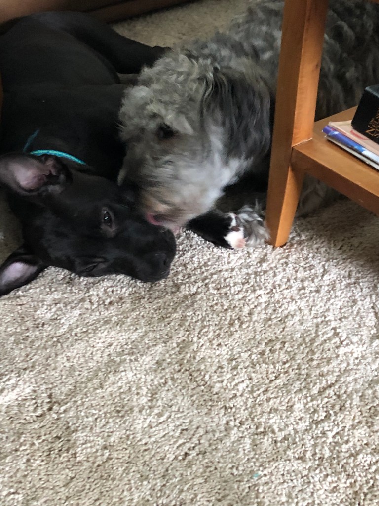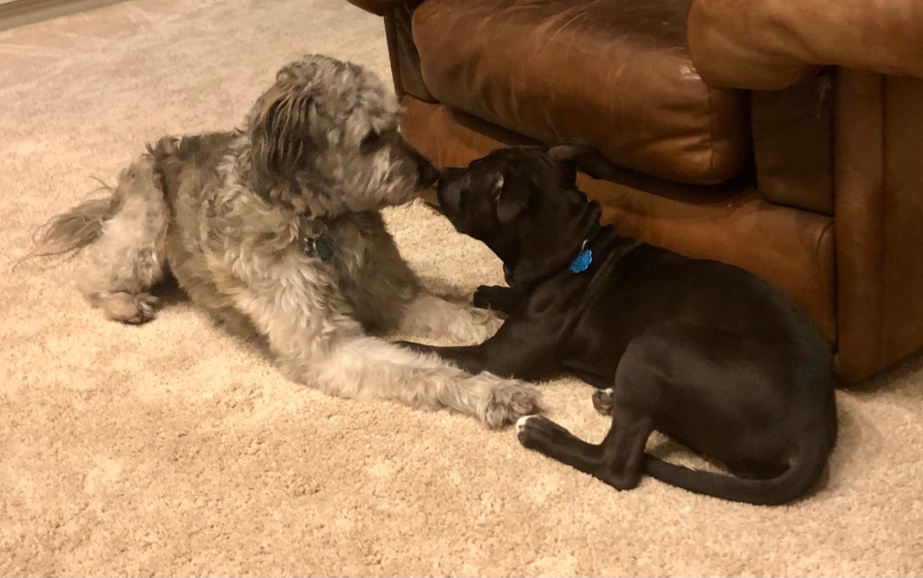 The tike was tossed in with the bro as soon as we got back from our walk so I loved up real close with Dad. He so appreciates my tenderness.