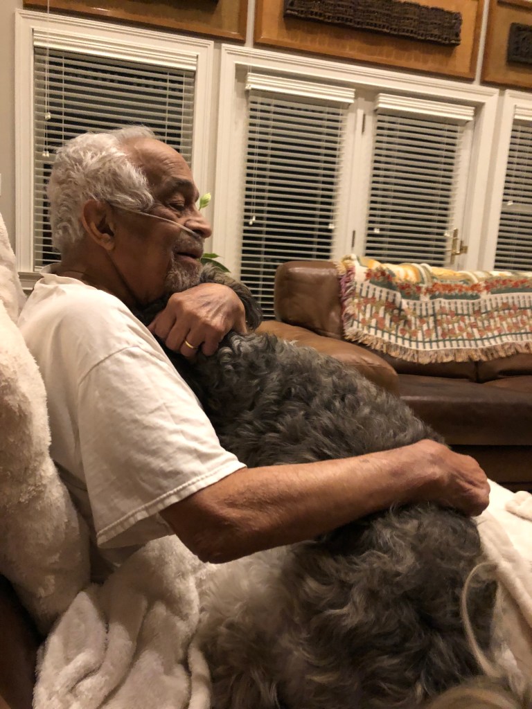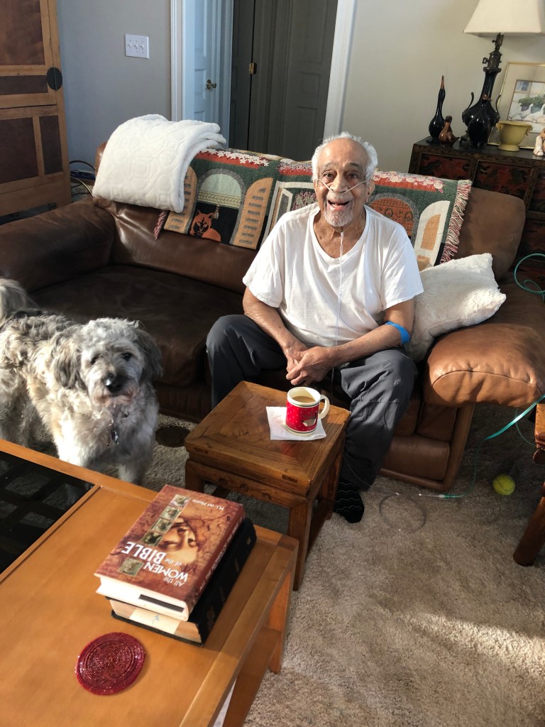 I looked after Dad as she mopped!