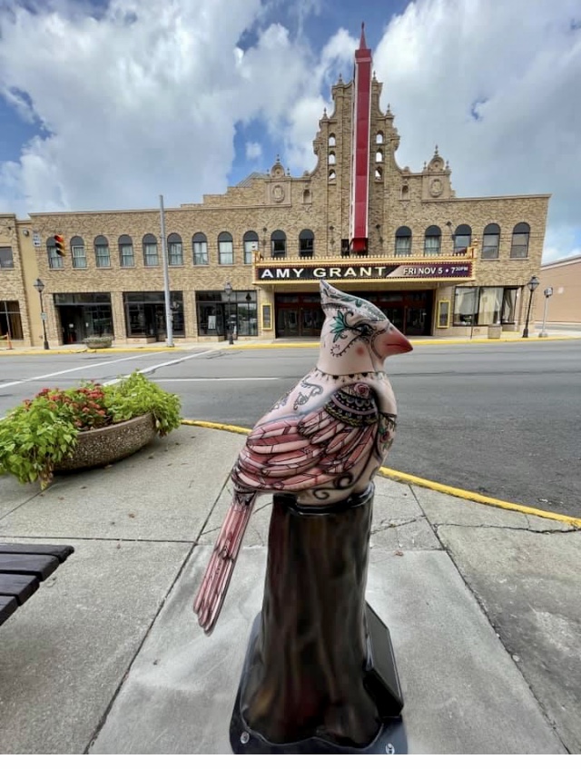 This is part of the city beautification program. All the birds are cardinals, the state bird of Ohio, but they all have different colors and patterns.