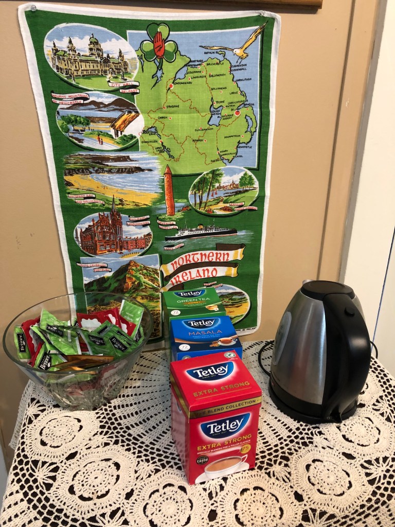 One of these was a linen tea towel made in the very factory where my Moms own Father worked for many years. It’s now in pride of place behind the all important kettle!