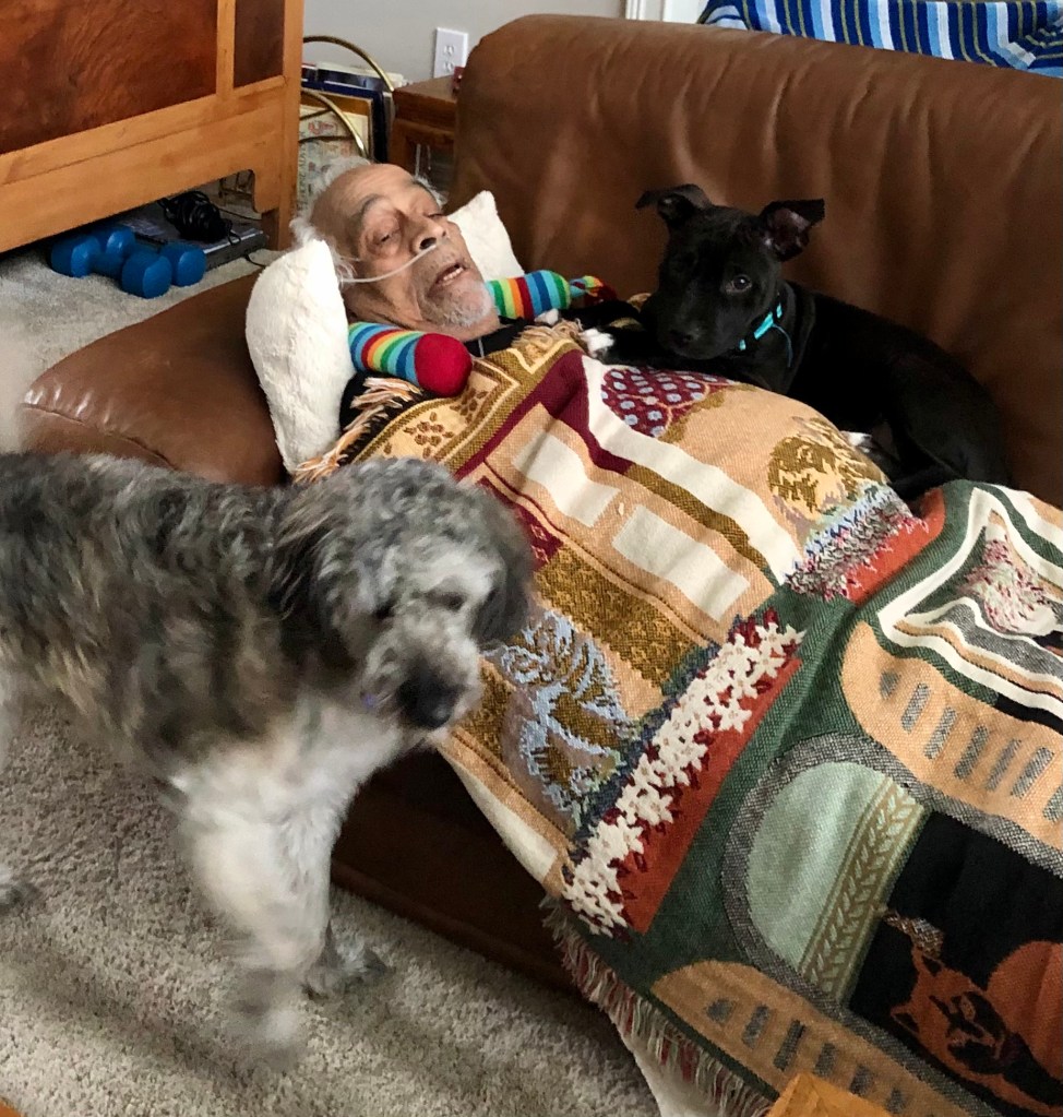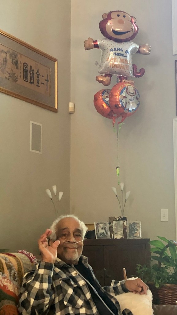 I looked after Dad as she mopped!