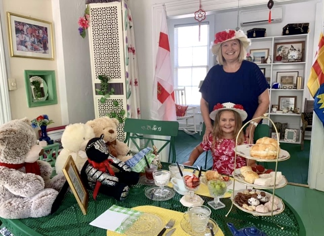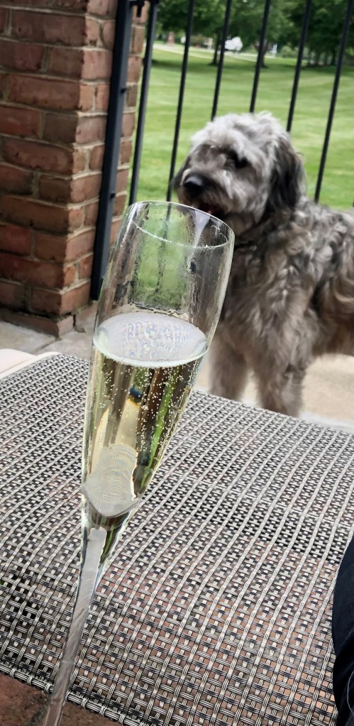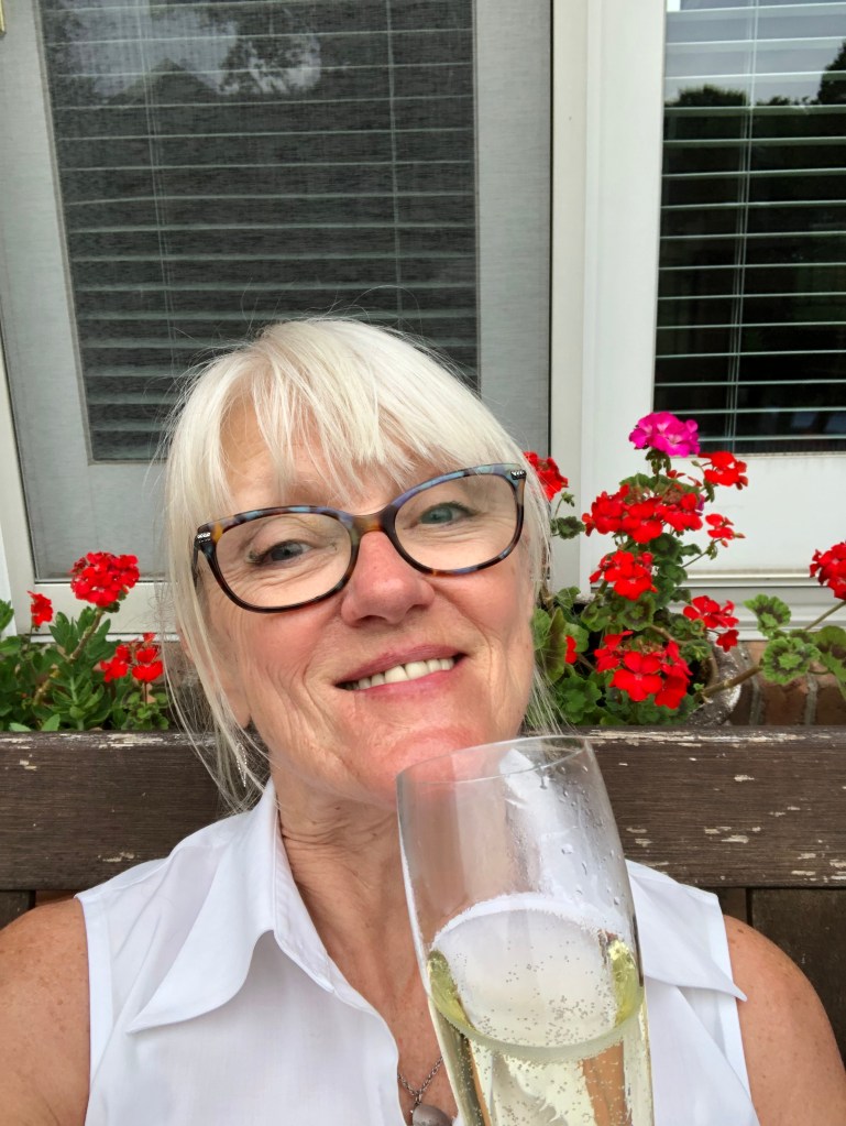 If she’s not deadheading flowers she’s running in and out to the fridge to top up her fizz.