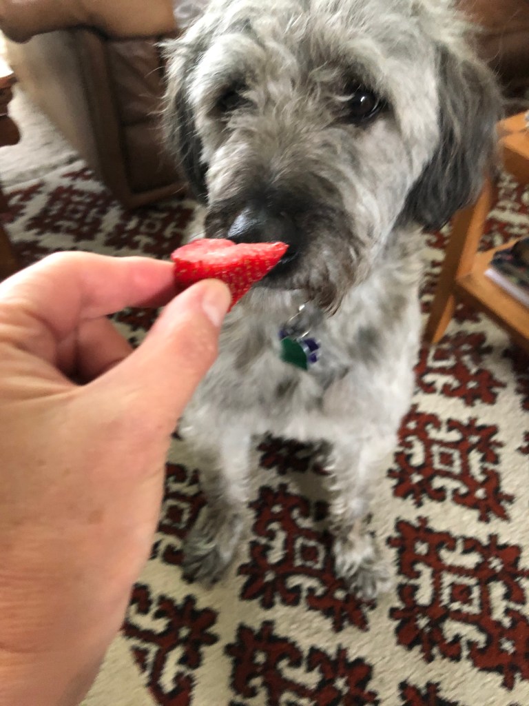 We’ve managed by some miracle to grow a small field of wild strawberries behind the lavender and mint.