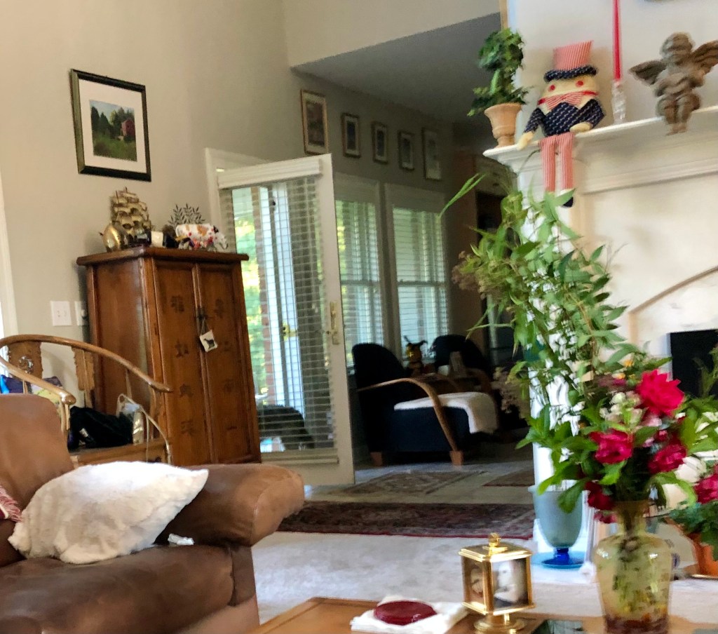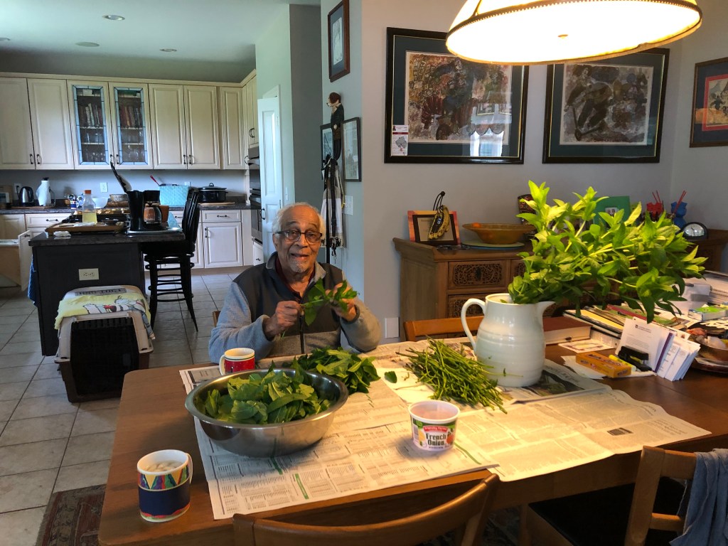 One advantage of windows open is that I can talk to Ma while she is working in her jungle.