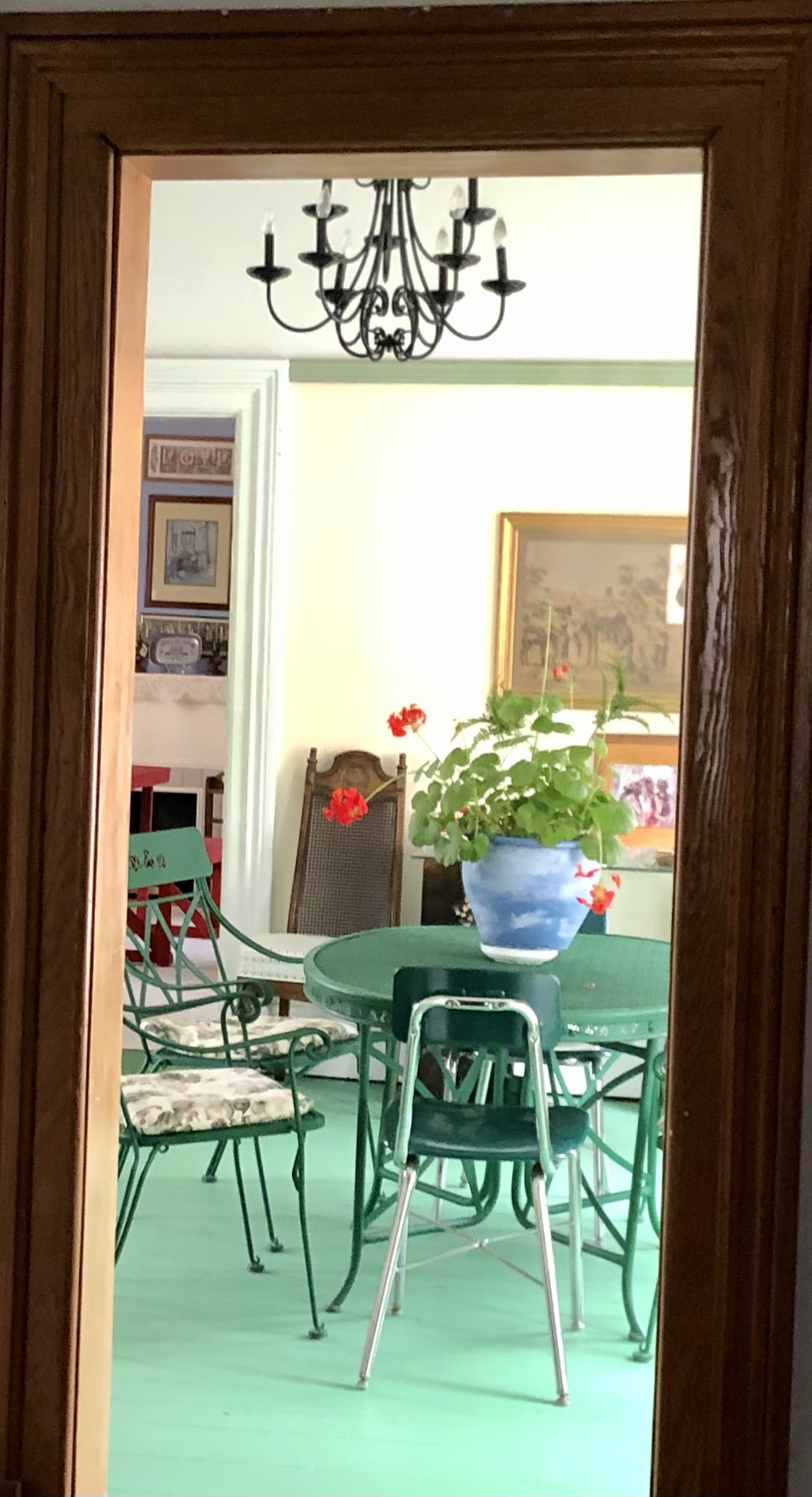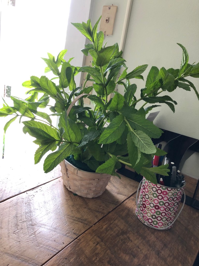 She left pretty soon after our walk with a haul of mint that she is using as a floral arrangement. Says it’s in keeping with the tea theme. Well whatever works for the woman works for me.