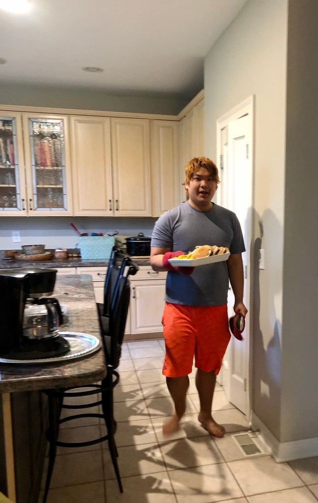 When she got back from asking for forgiveness he’d made pancakes and eggs for her breakfast. He’d cooked enough to feed a family of ten. I helped.