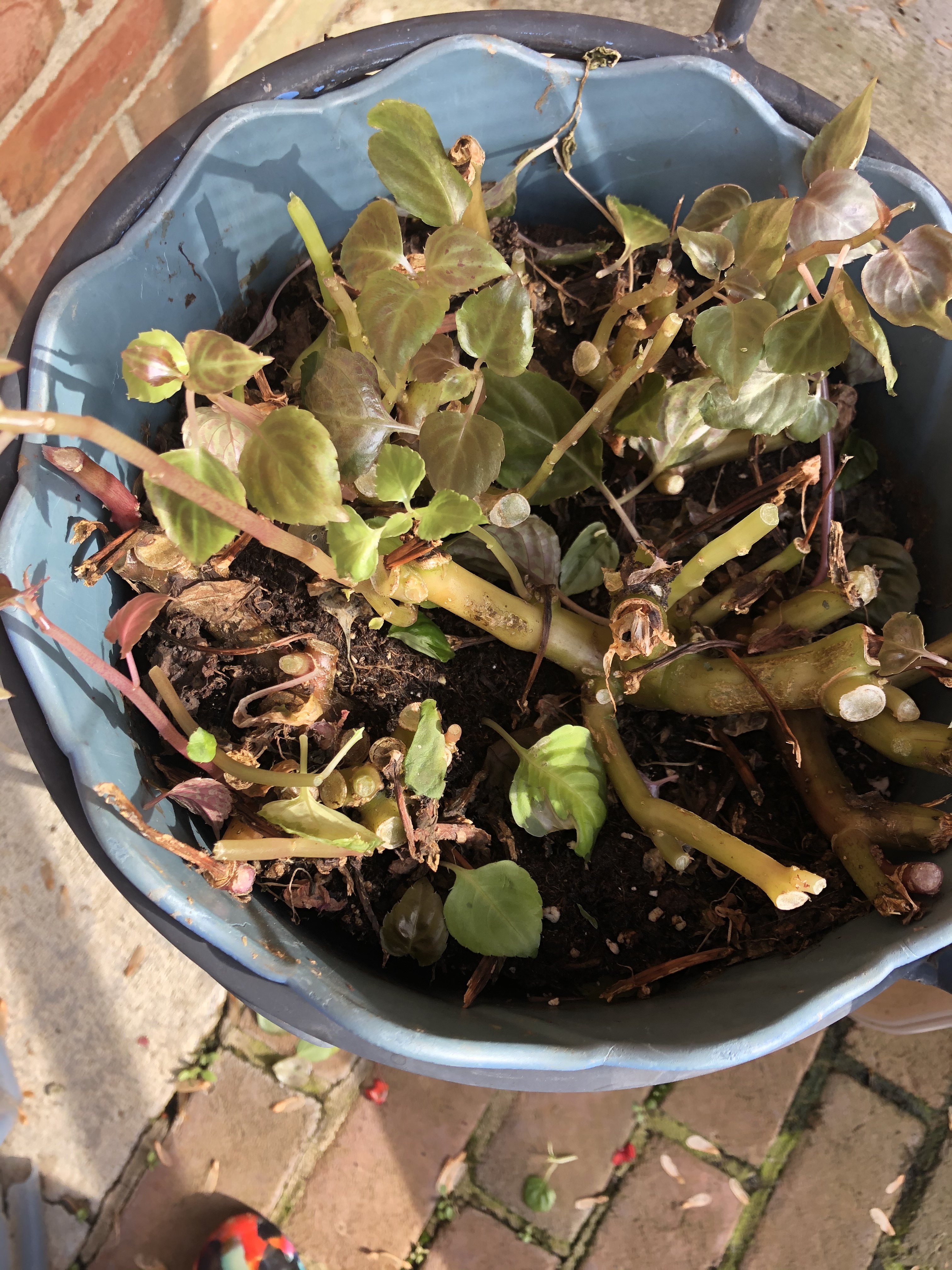 Finally we headed home and when Ma went to put her geranium plants on the patio she found a disaster. The Bizzy Lizzy’s that she kept in our bathroom over the winter and that she’d put outside last week had all been ravaged by frost and rain. Poor souls I’d grown attached to them. Maybe there’s a chance if I bark nicely they’ll come back to life.