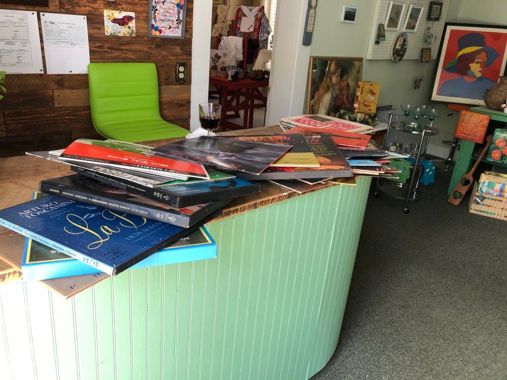 She wasn’t there five minutes until she snagged a huge haul of old LP records for a dollar. The auctioneer didn’t even make her get a bidding card he was that glad to get rid of them.