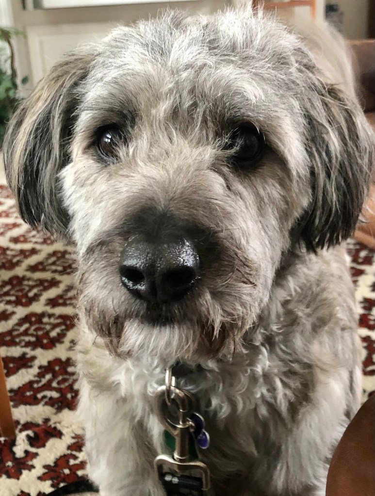 I sit and stare at my Mom in the same way most mornings until she gives in and takes me for a walk.