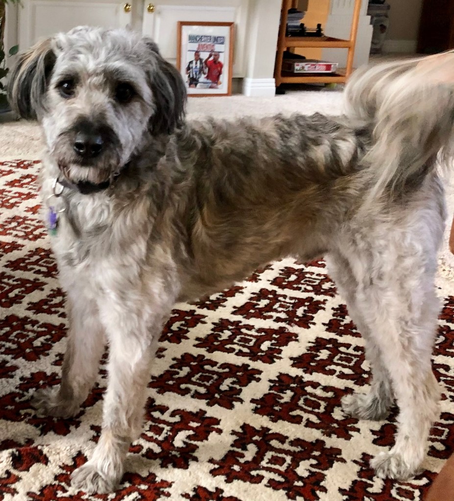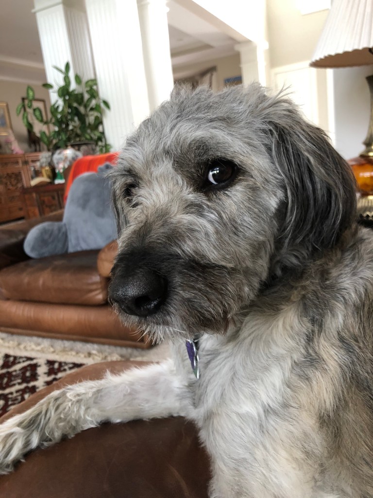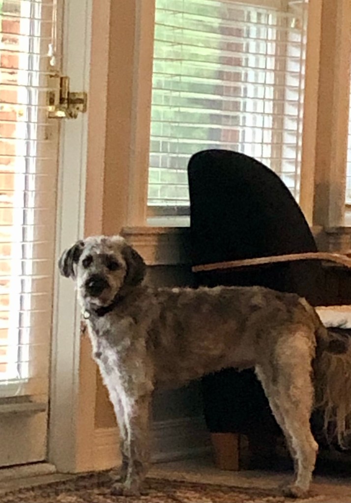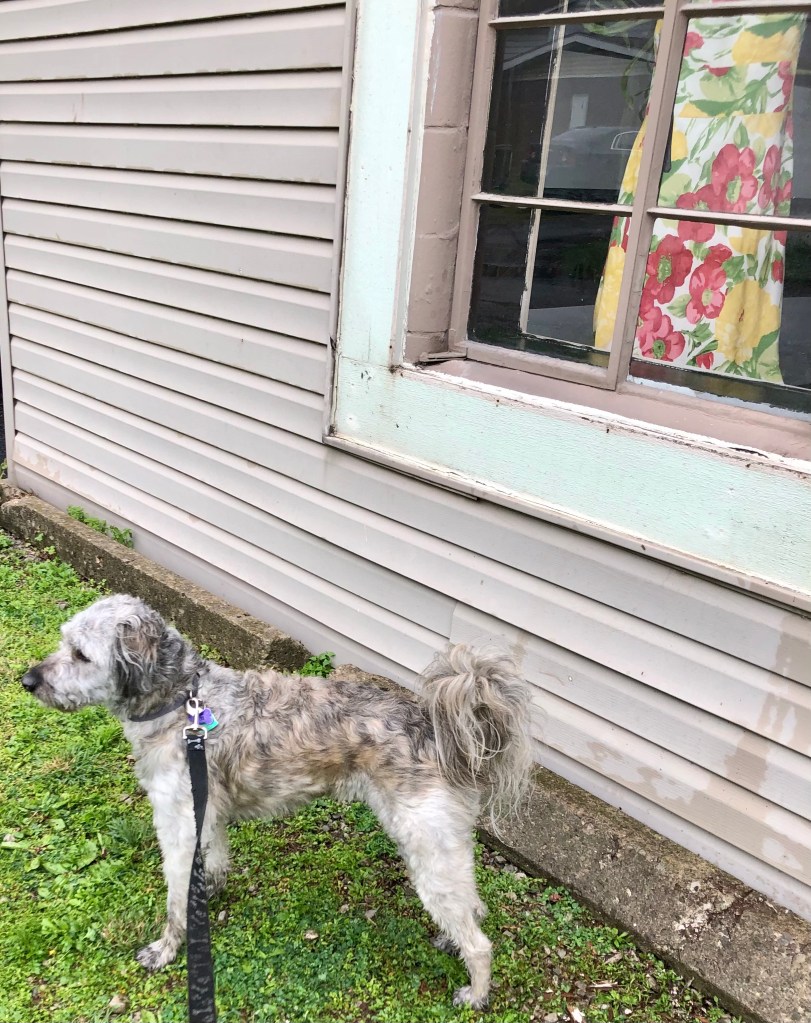 Ma and me had a trot and got soaked to the skin. I was wearing my usual fur, she her thickest raincoat. Mines better!