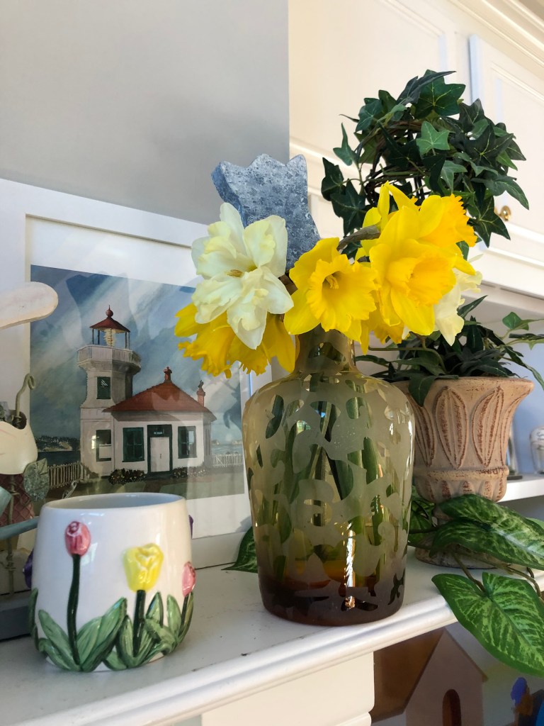 Mum and Auntie Laura were again working at the house. Aunt Laura brought a beautiful surprise a whole perennial garden. She planted it too after she’d hung more pictures and cleaned the one remaining carpet.