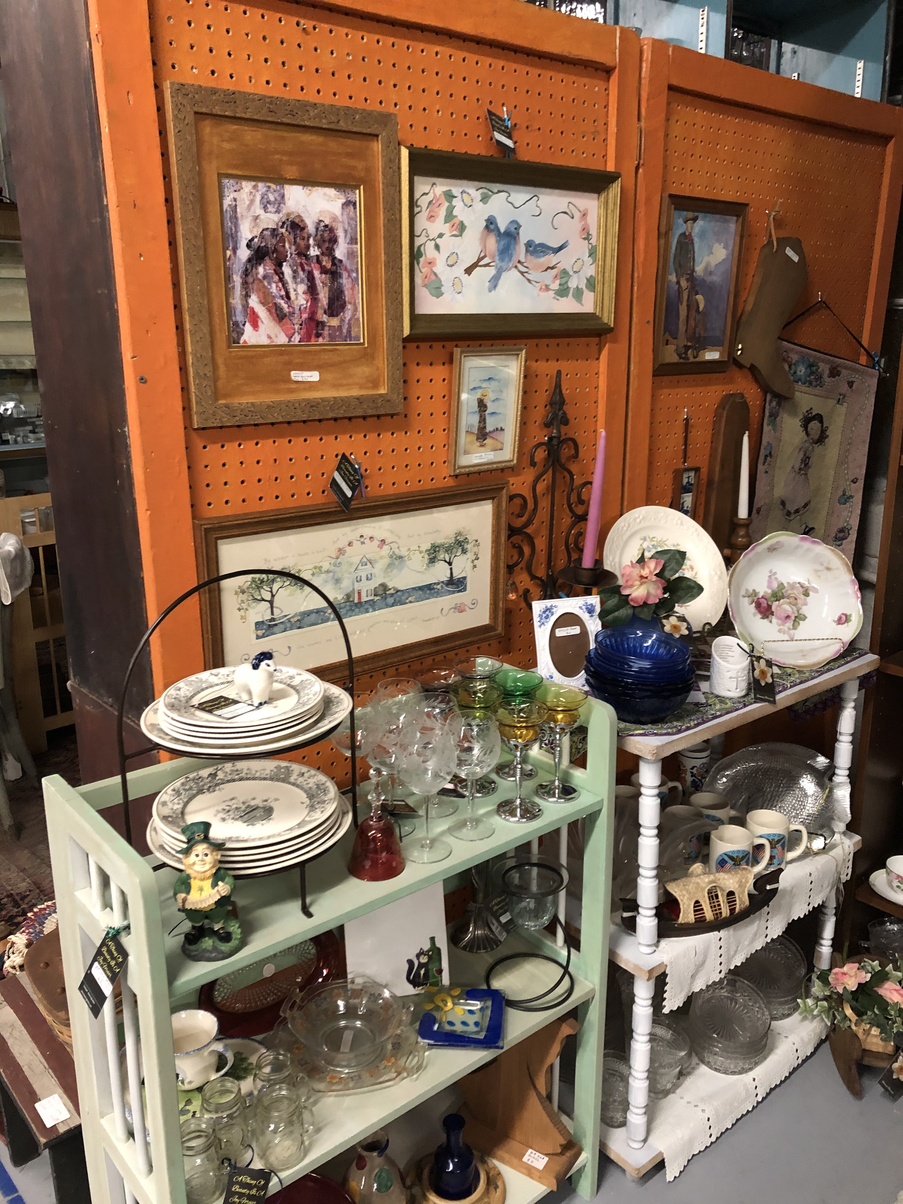 The injection done we spent big at Goodwill a whole $28 or as my Dad says 2800 cents. Lots of candle sticks, pictures, photo frames, a gigantic salt and pepper set, magazine rack, basket and of course since Dad was there books! This time for resale!