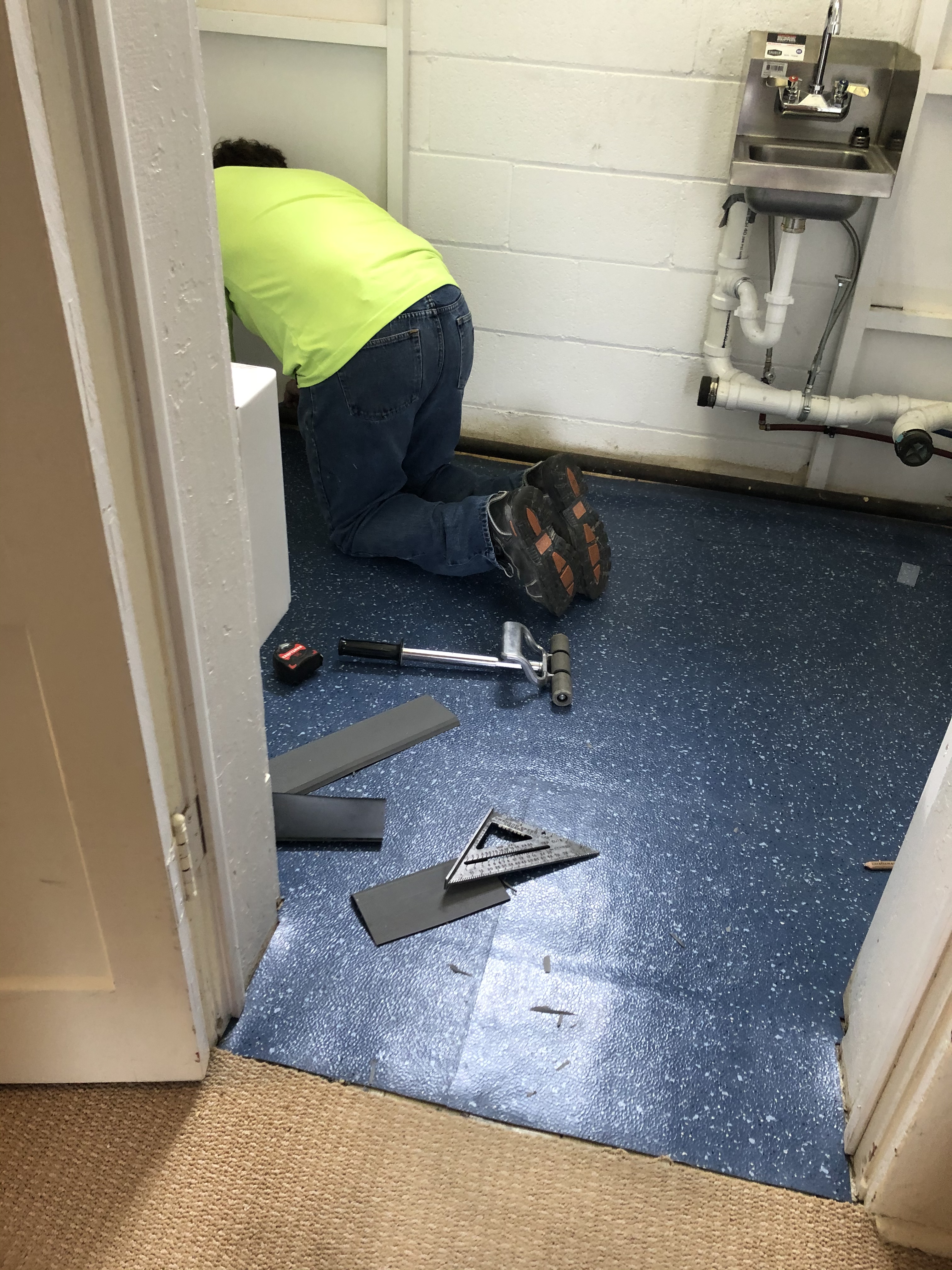 She got her « I must mop it twice a day » kitchen floor installed per hygienic design requirements for a food prep area.