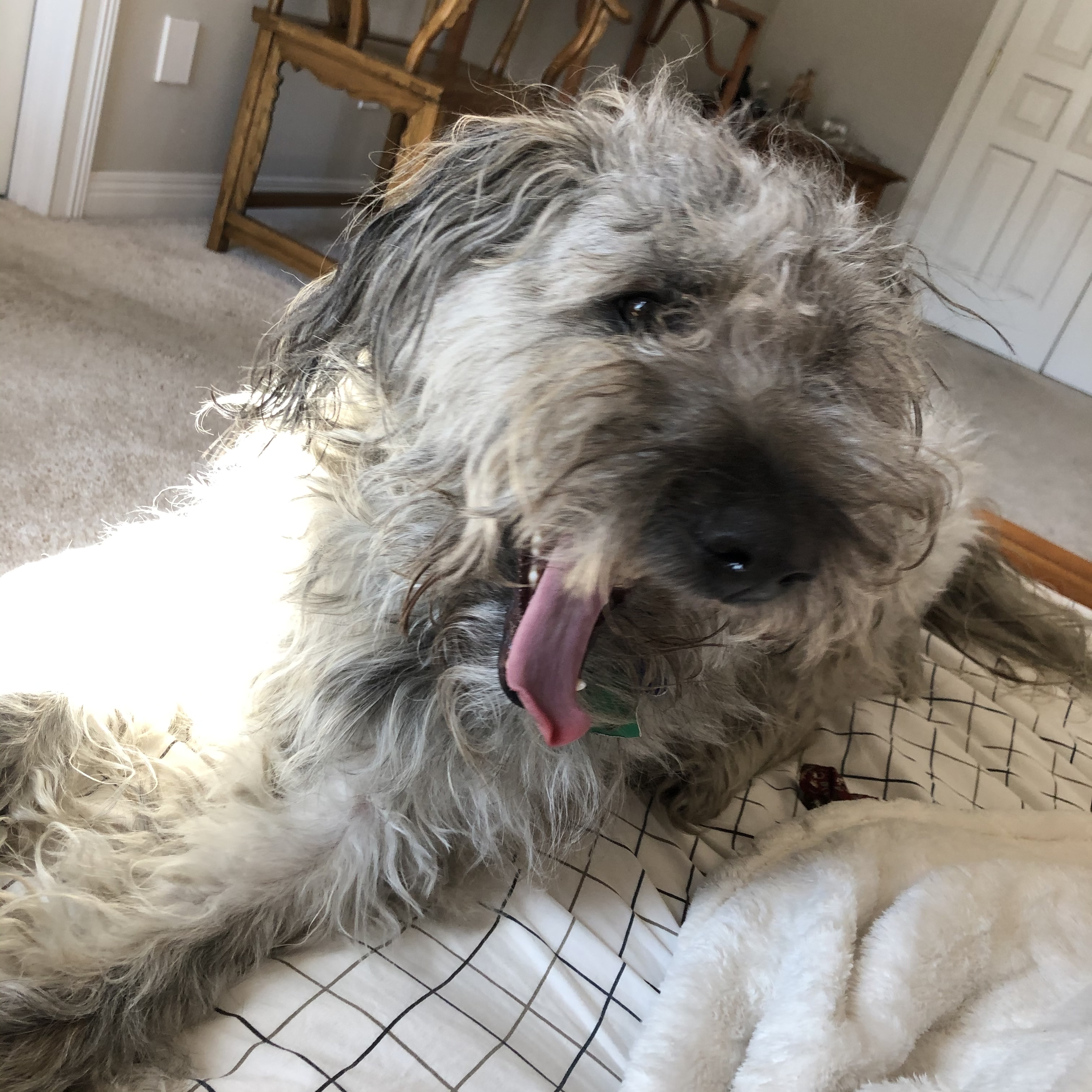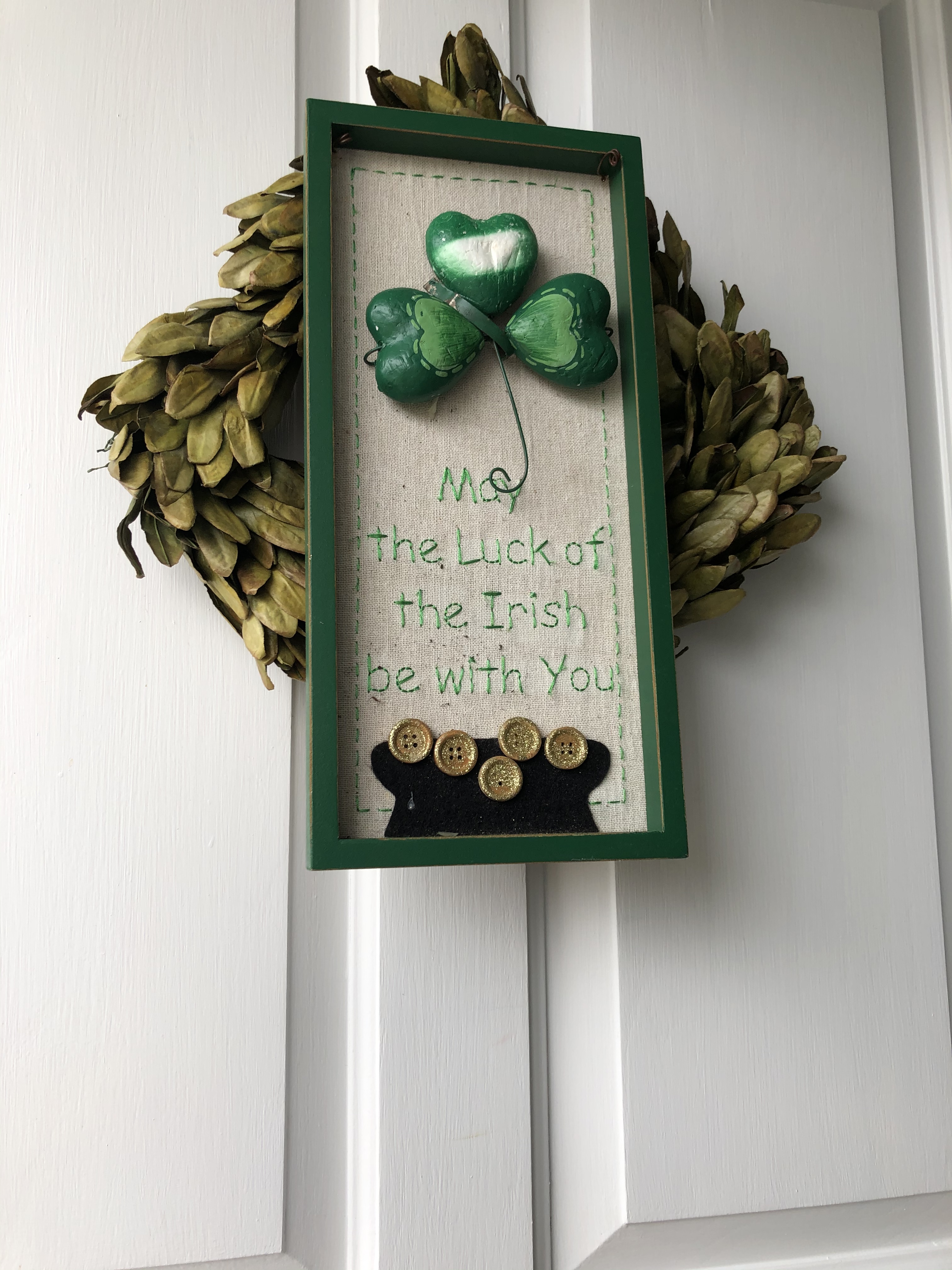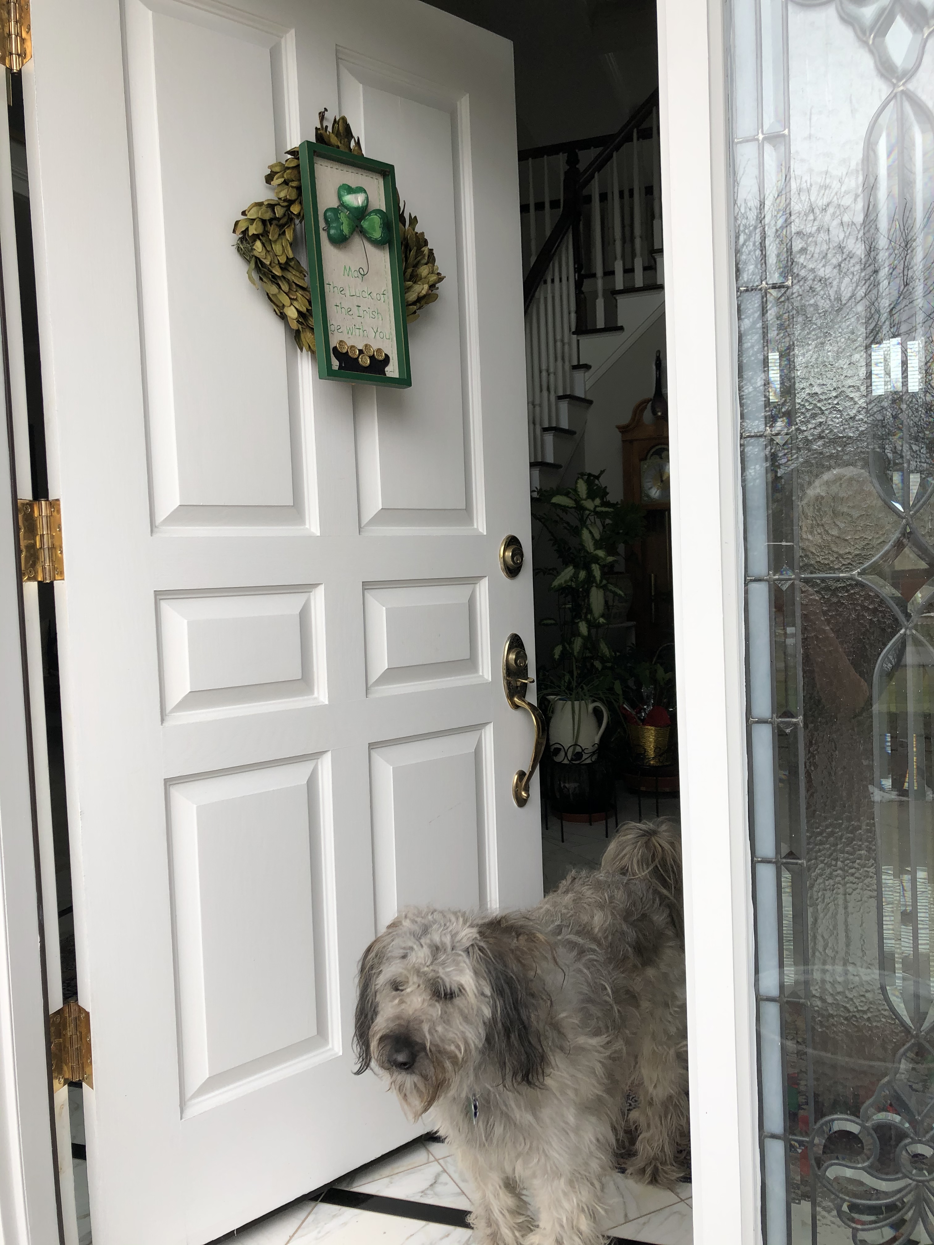 We stuck up the Saint Patrick’s decor to help her mood as well.