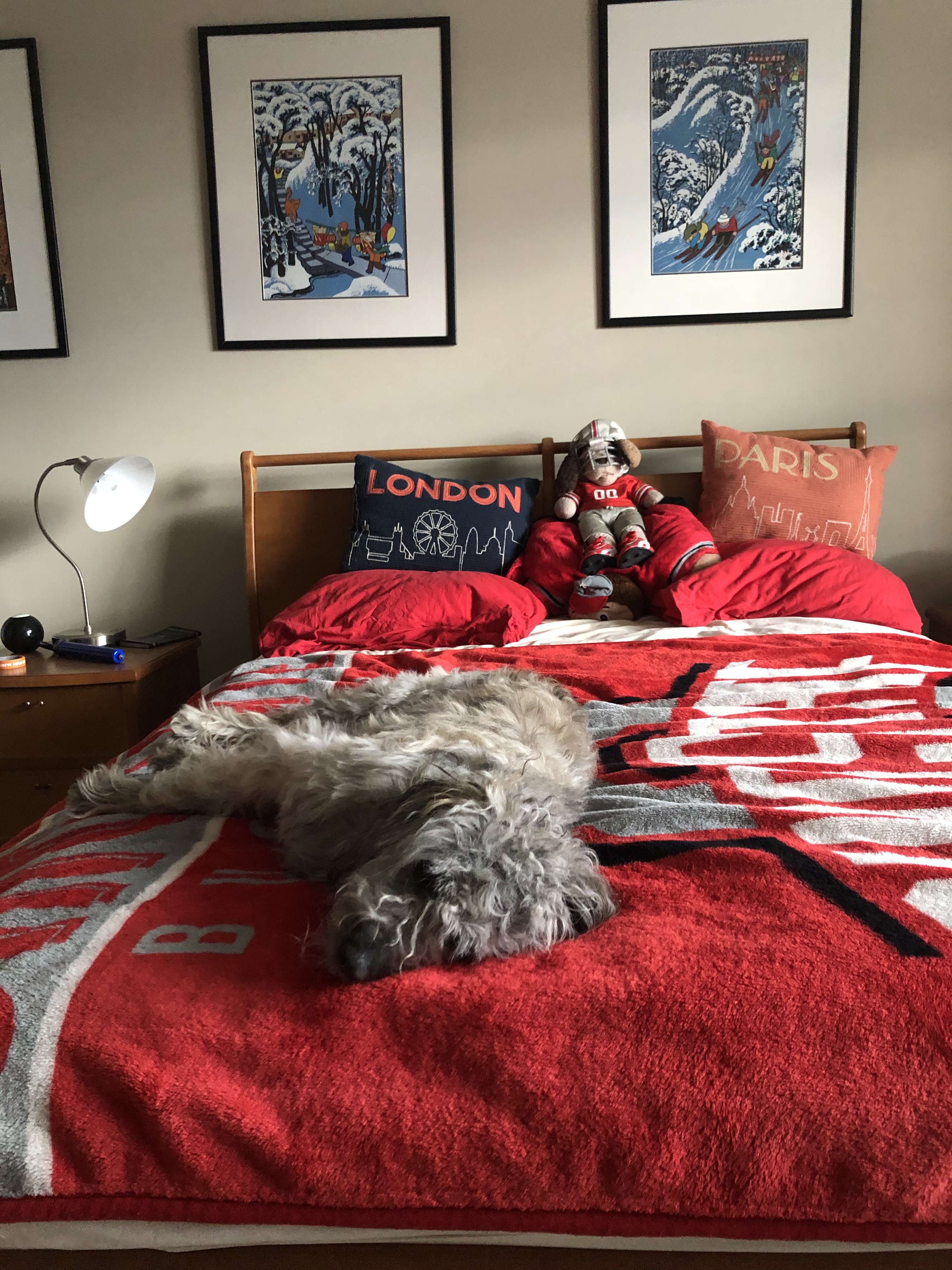 Knowing she’d be interrupted at some point if she stayed in the living room either by the menfolk or my barking we had to hide ourselves in the bros bedroom that he never uses anymore.