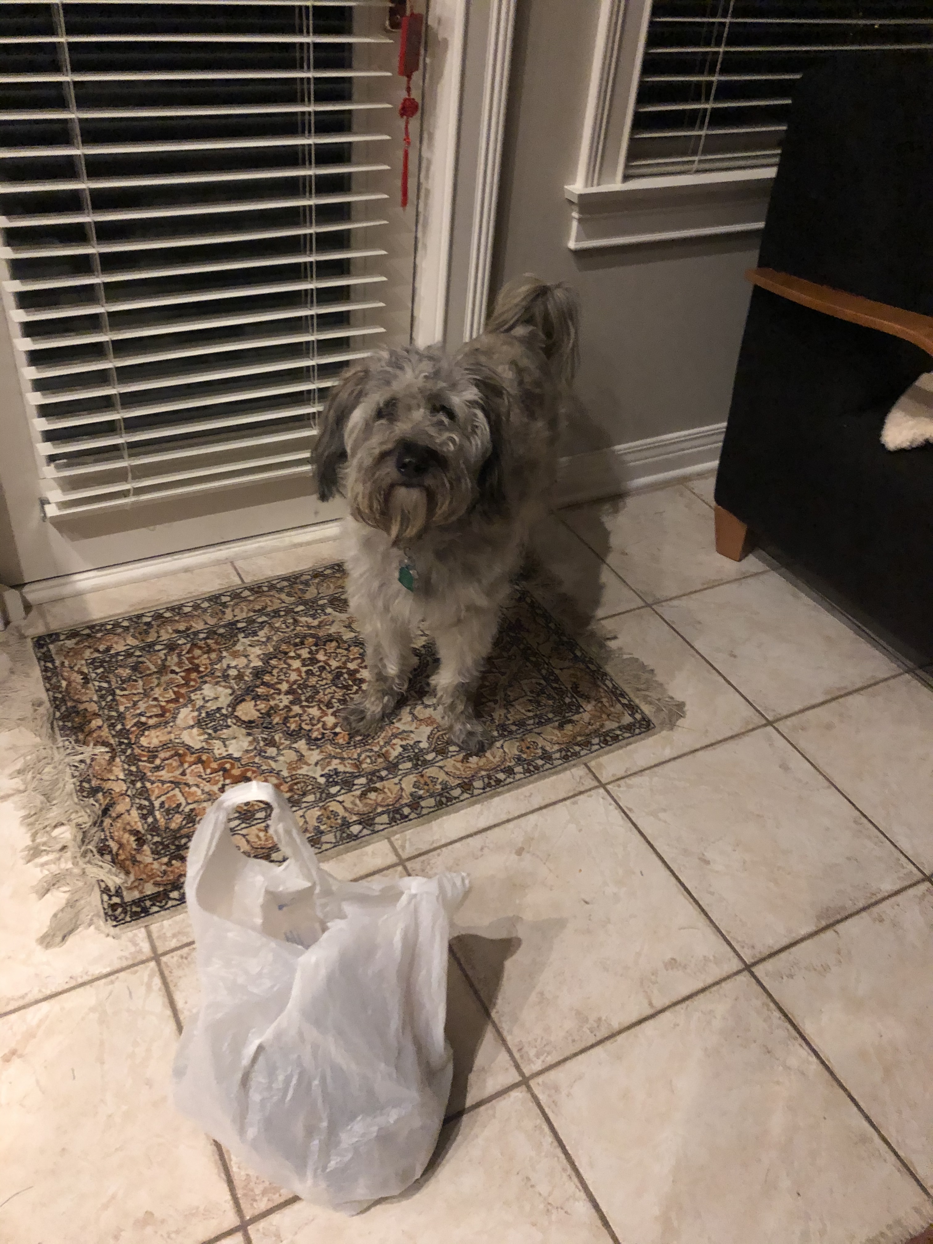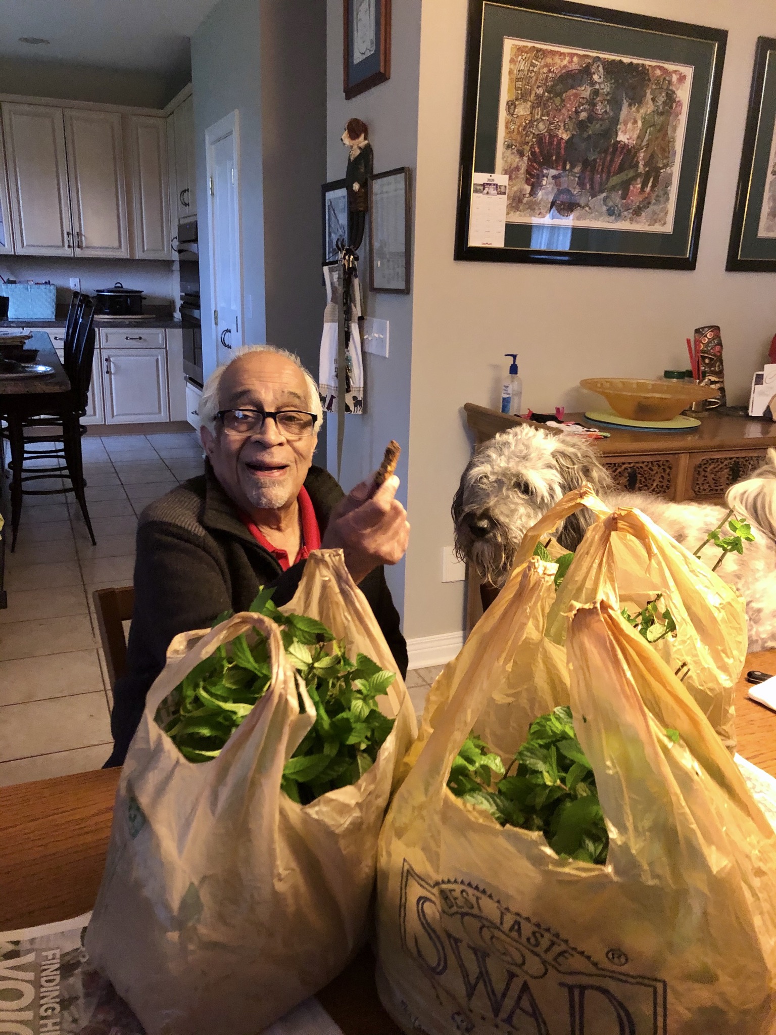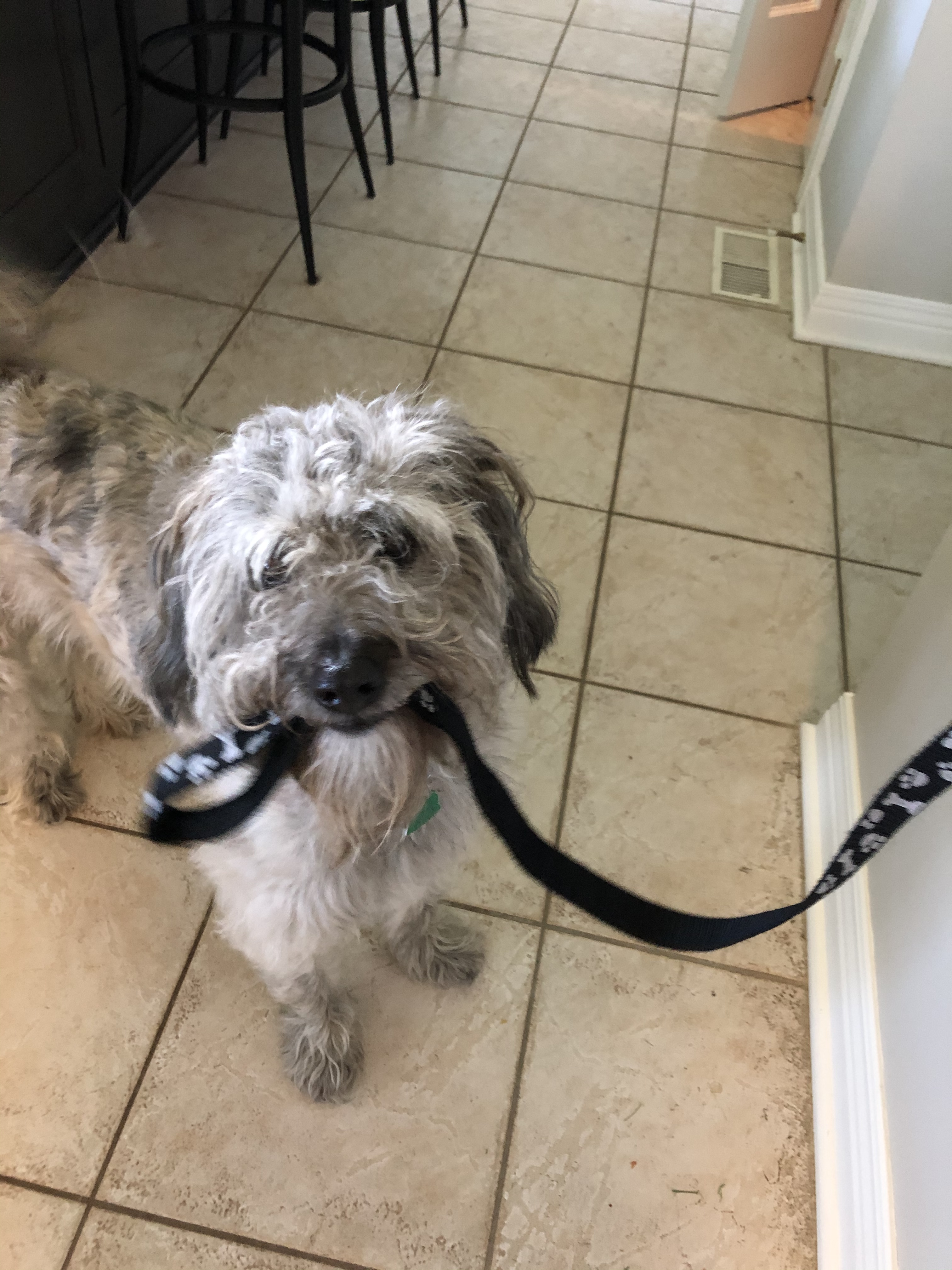 The bro got candy, Dad got socks and I got a new leash. So today I started wearing it!