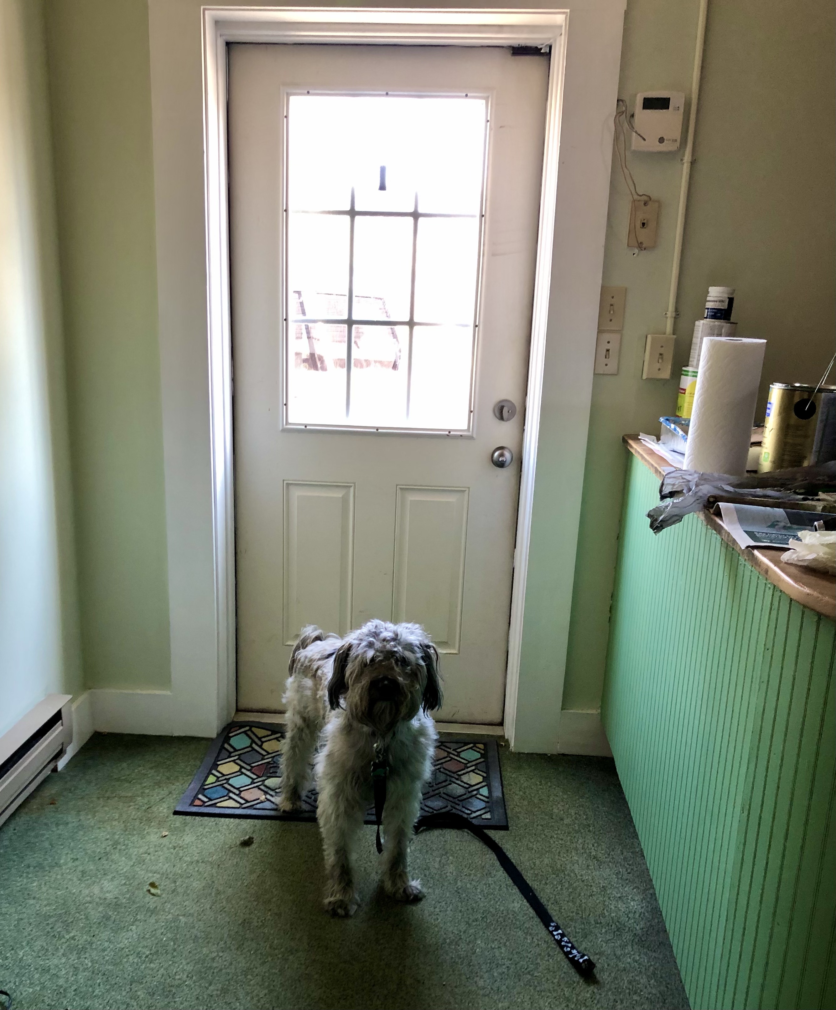 She’d had a load of washing in also while at Church so she stuck it in the drier and a second load of washing into the washing machine and then turned on the tap in the laundry room sink to rinse the leash.