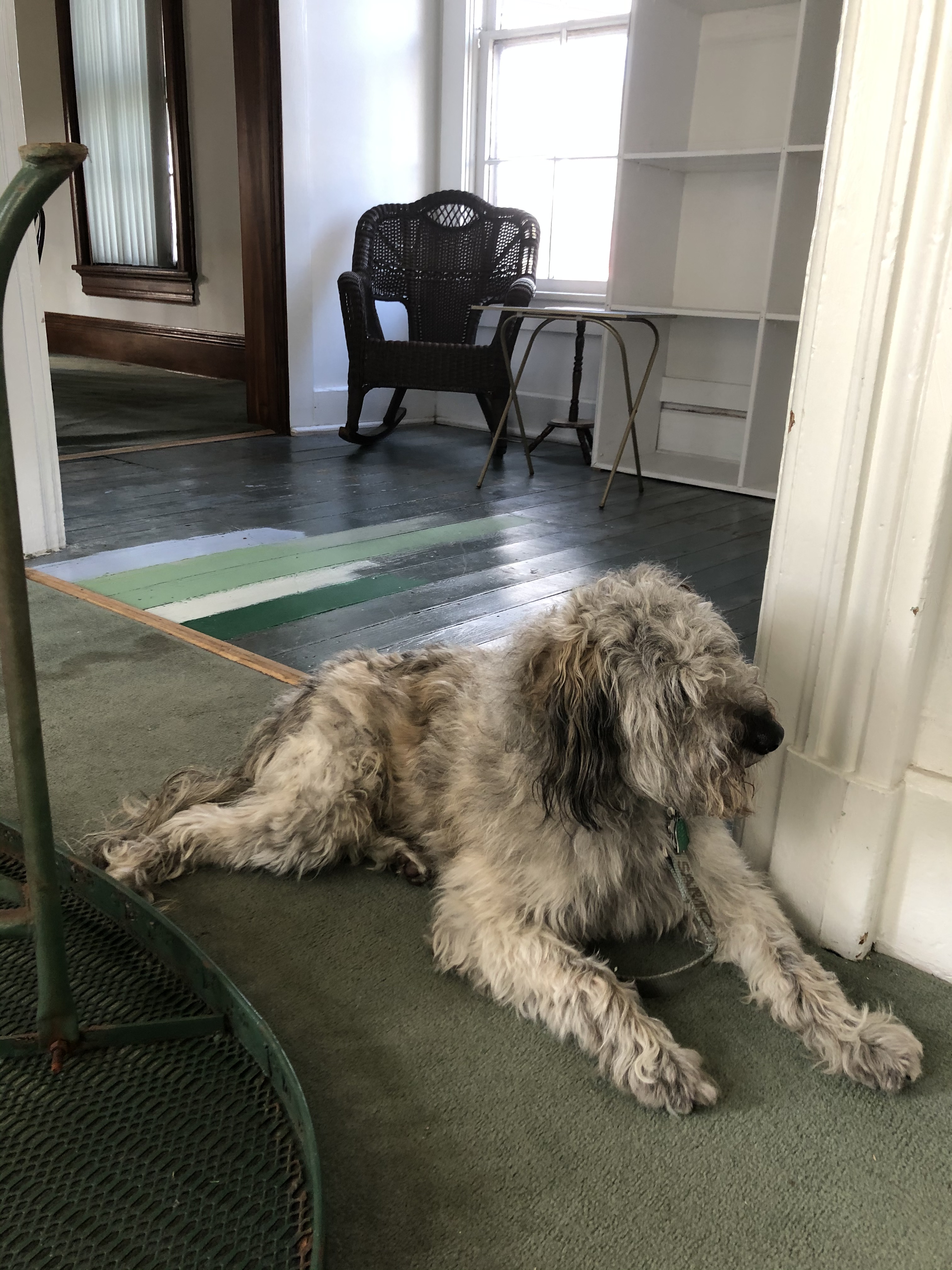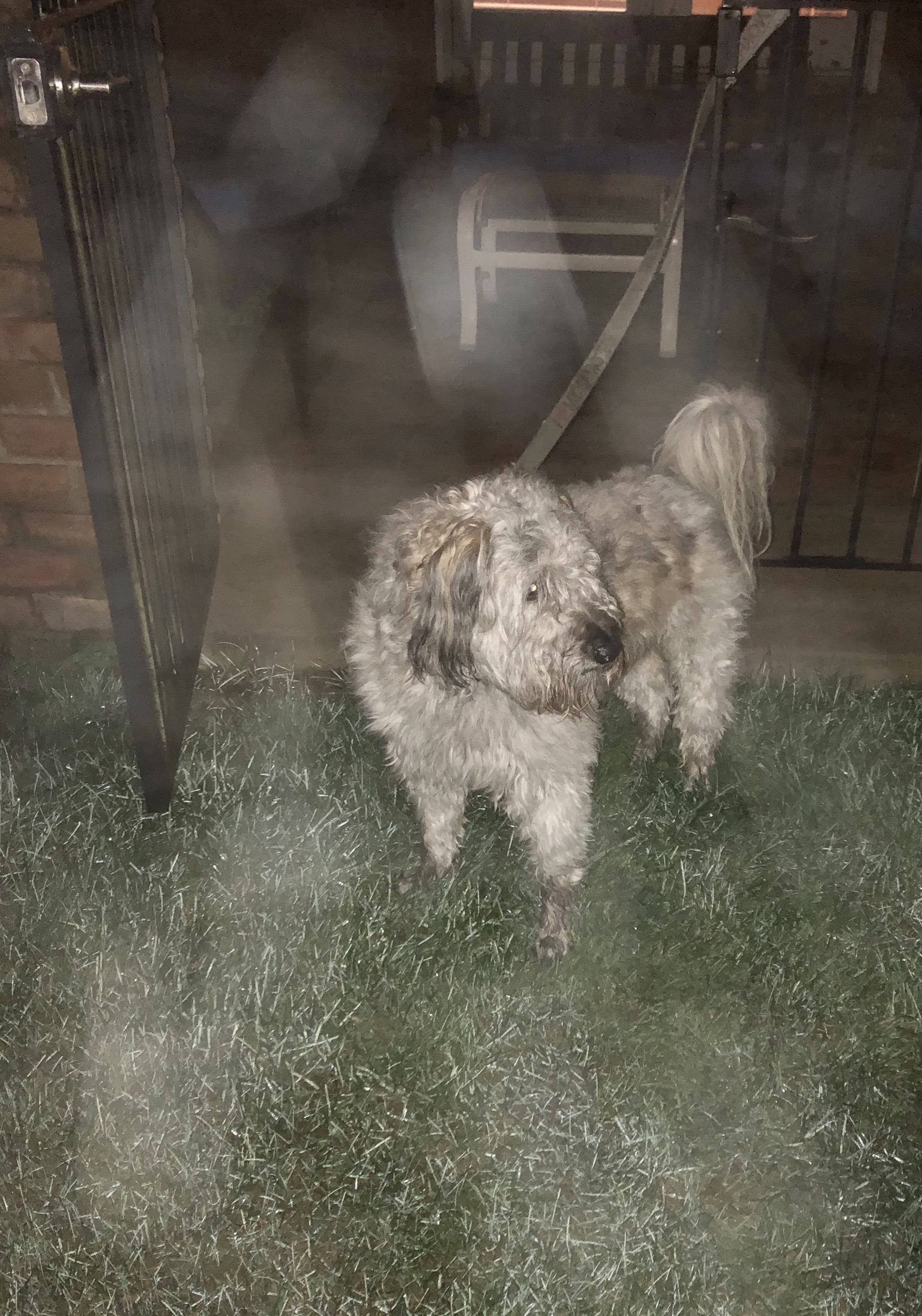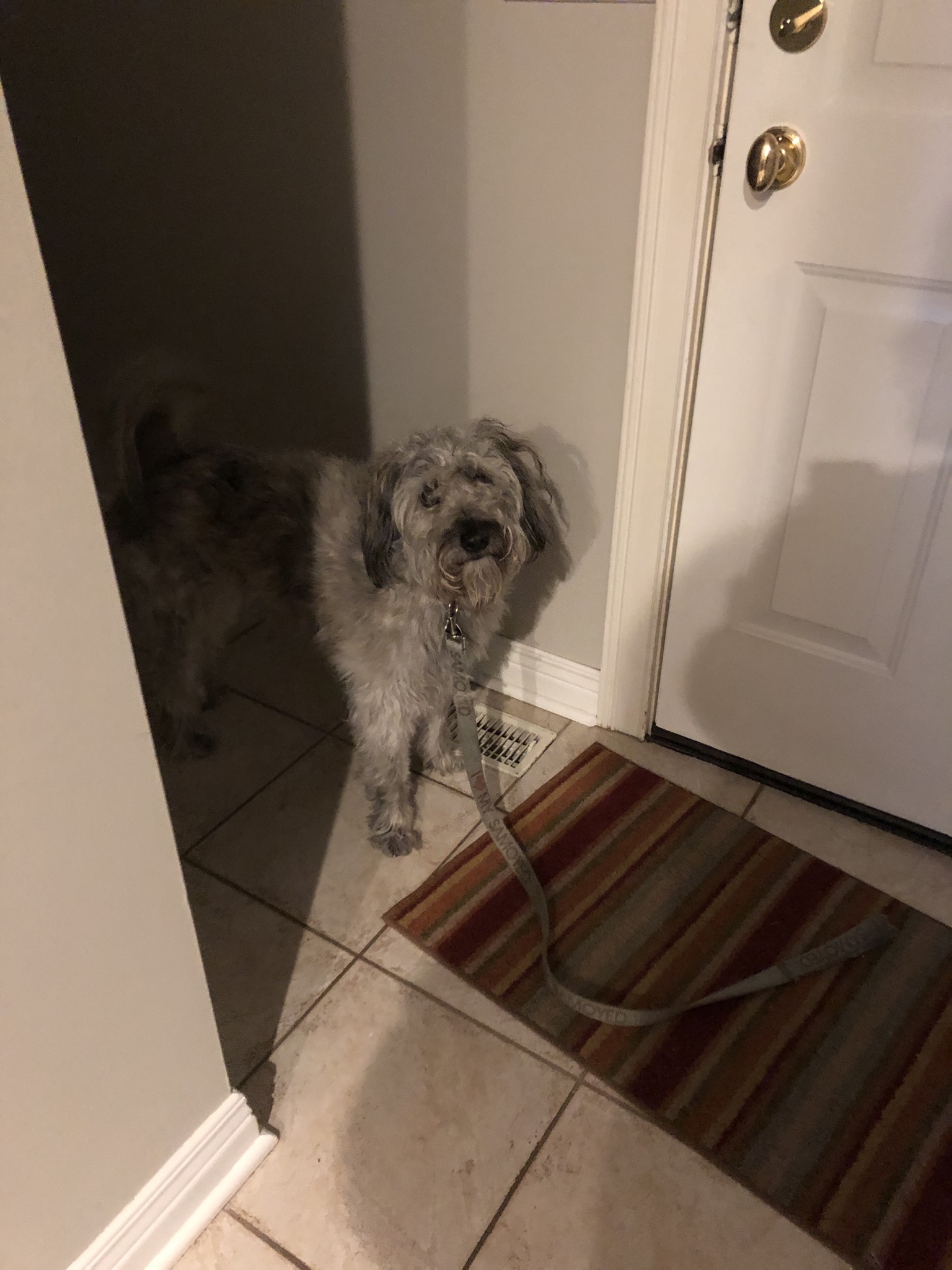 Today I decided she was not getting out without me Incase she bought some other massive materials so I got my leash and blocked the door.