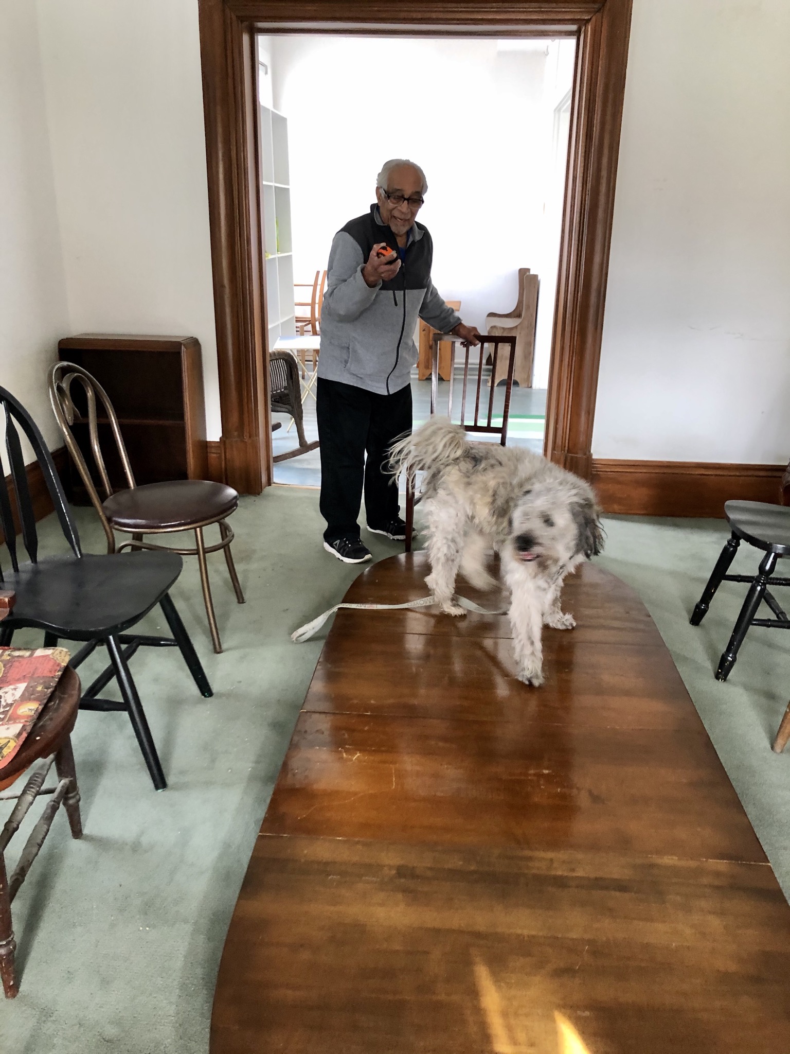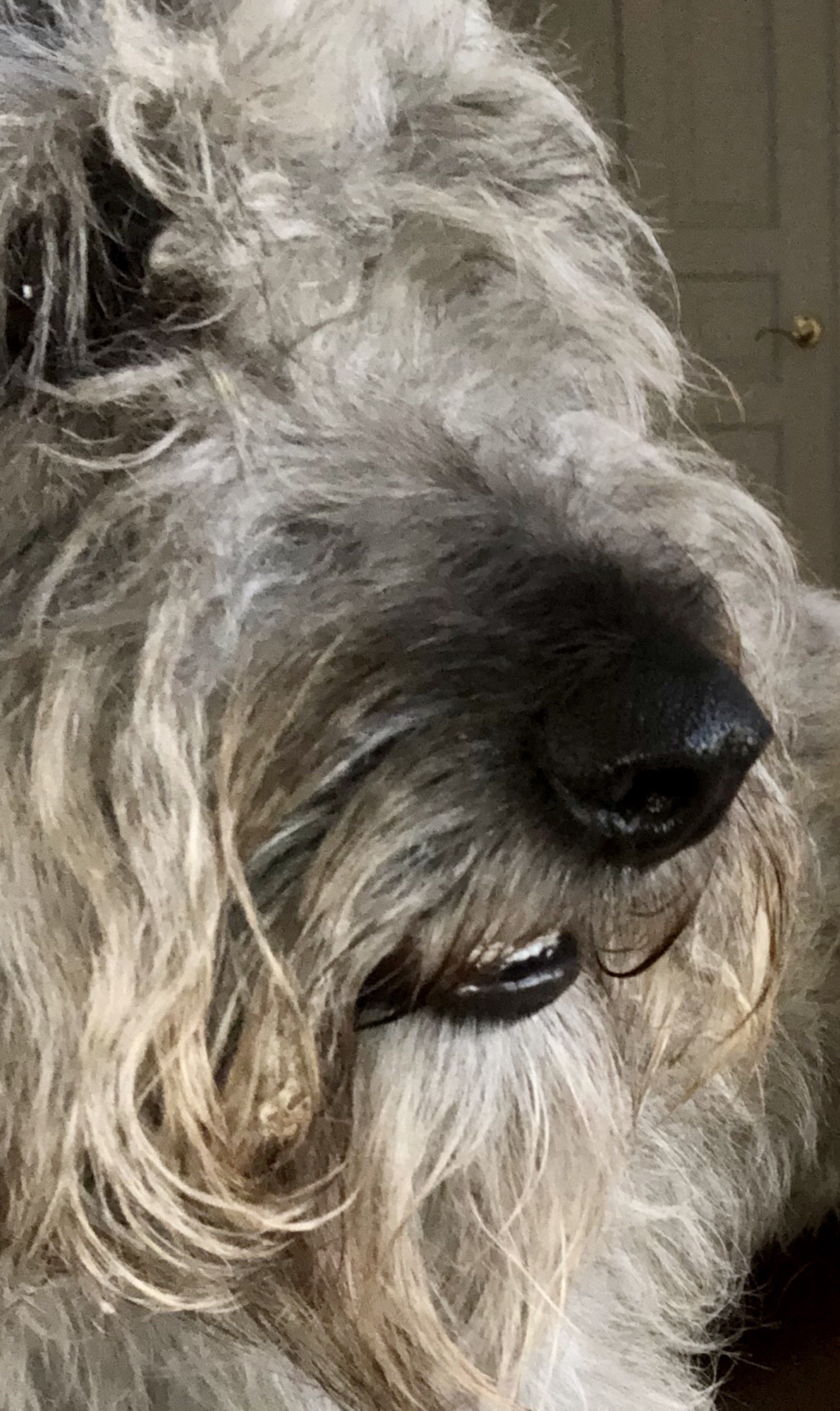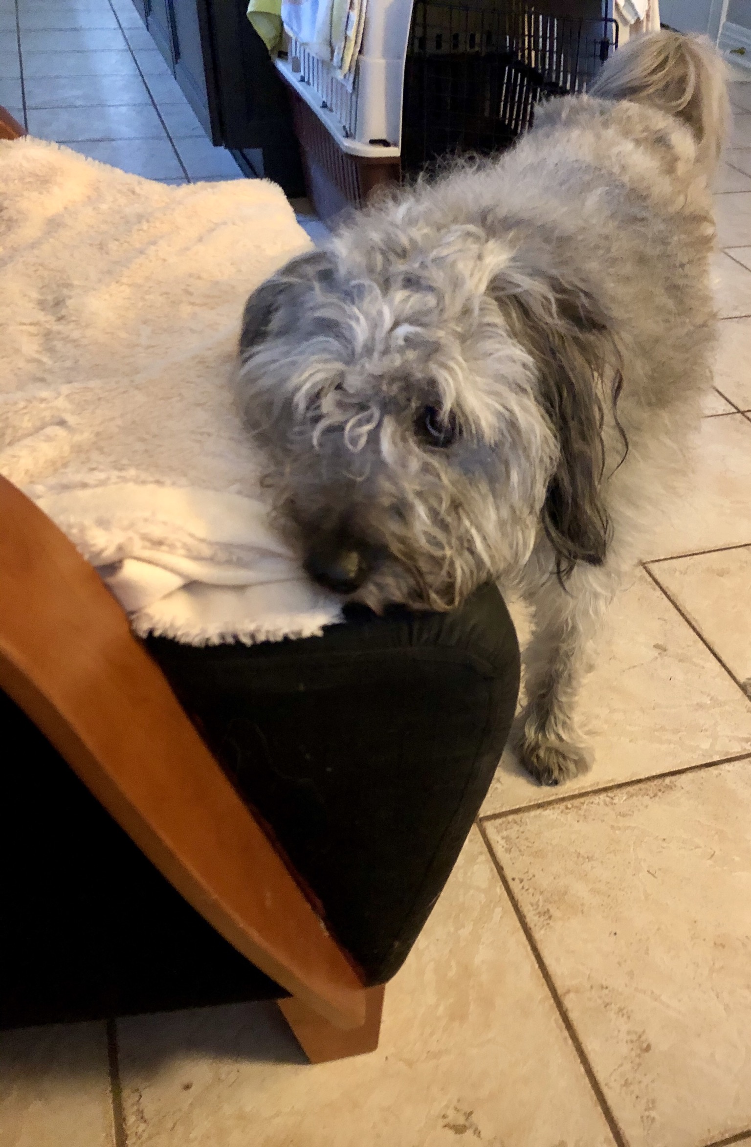 Today I decided she was not getting out without me Incase she bought some other massive materials so I got my leash and blocked the door.