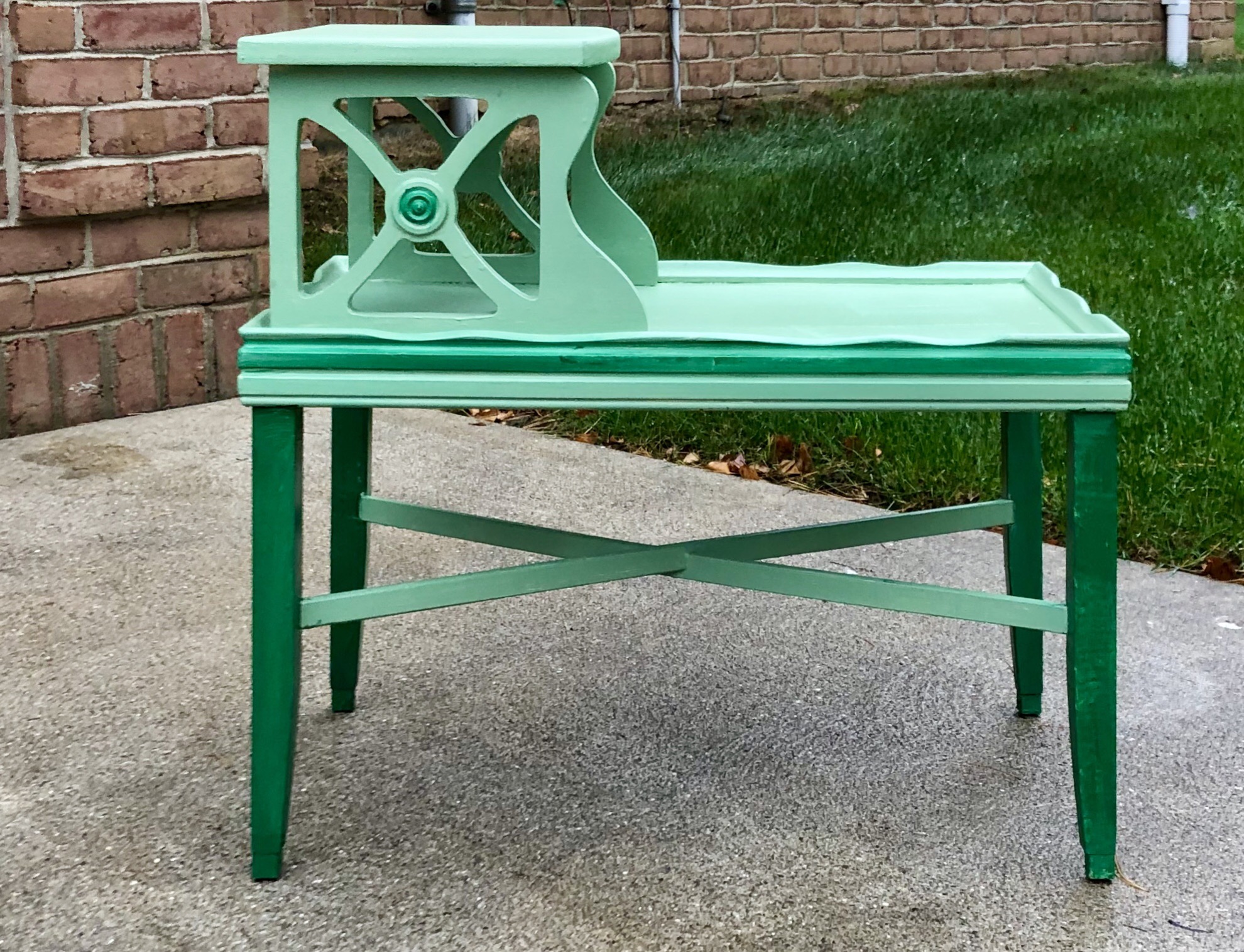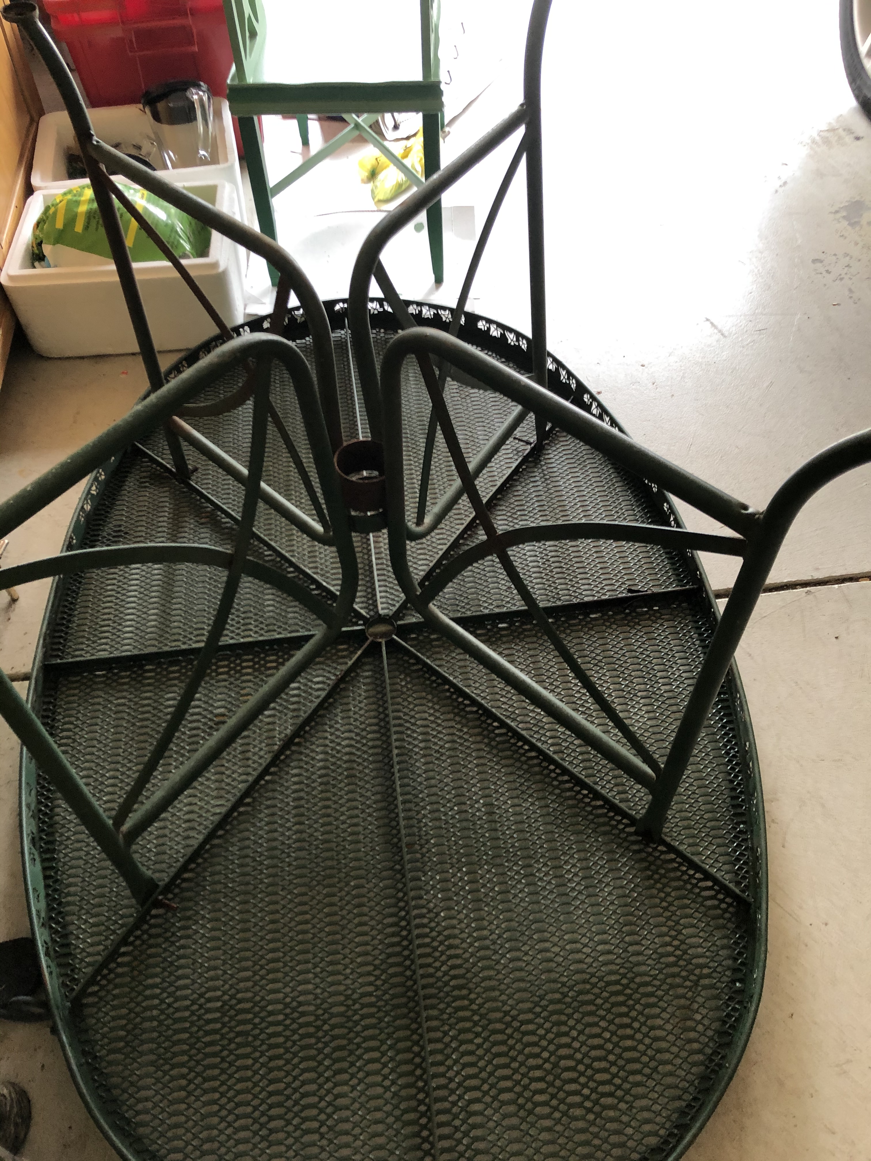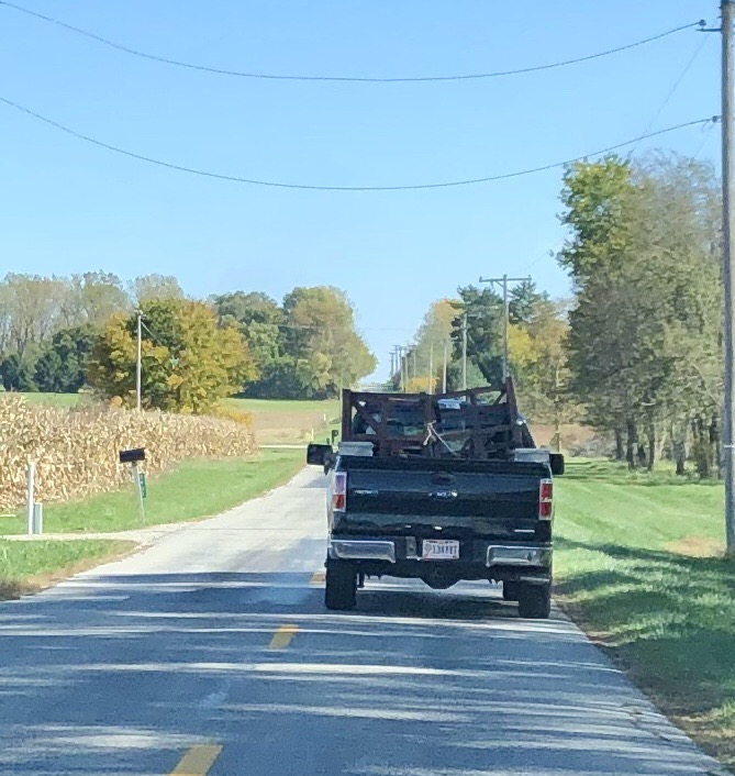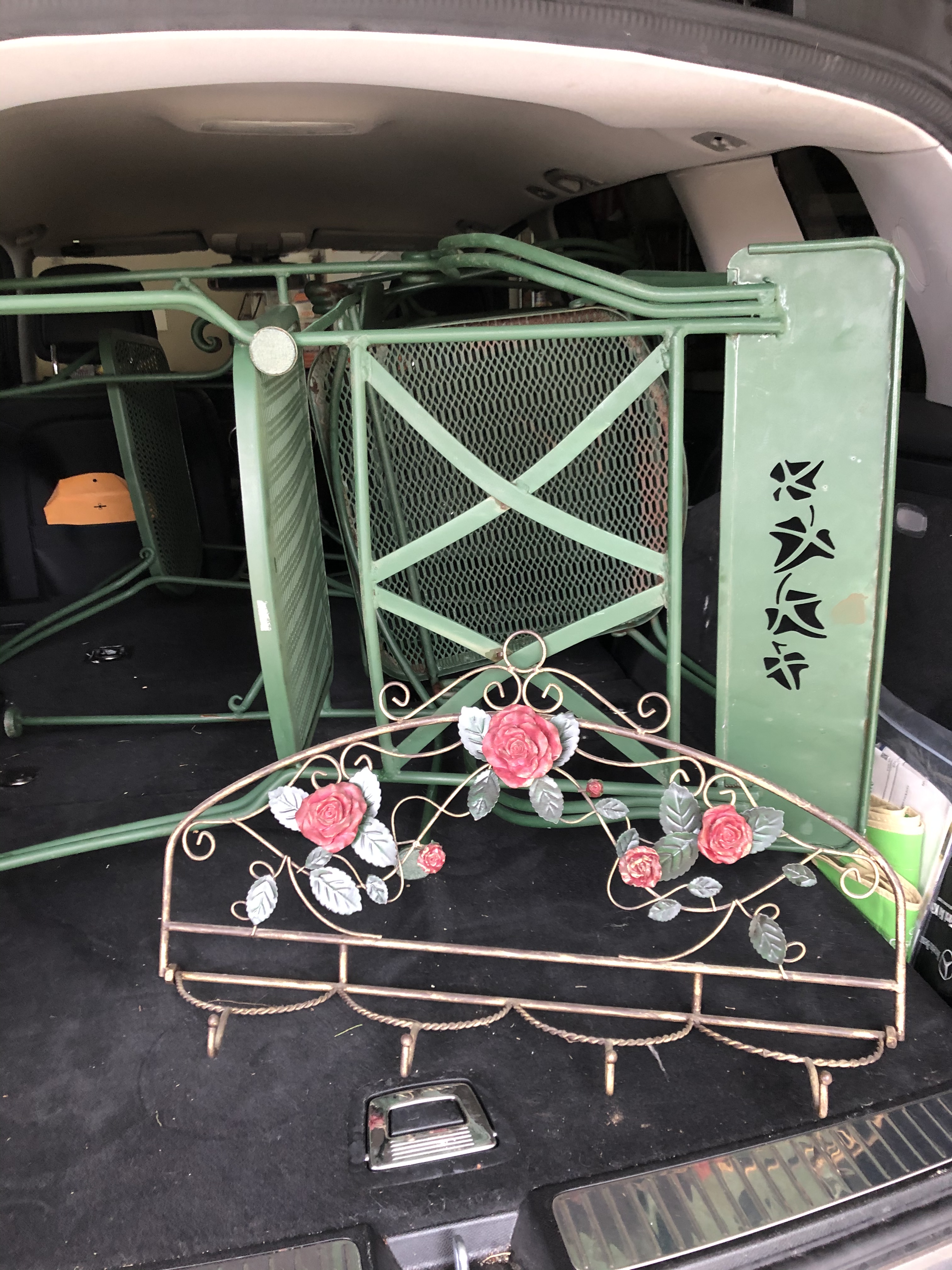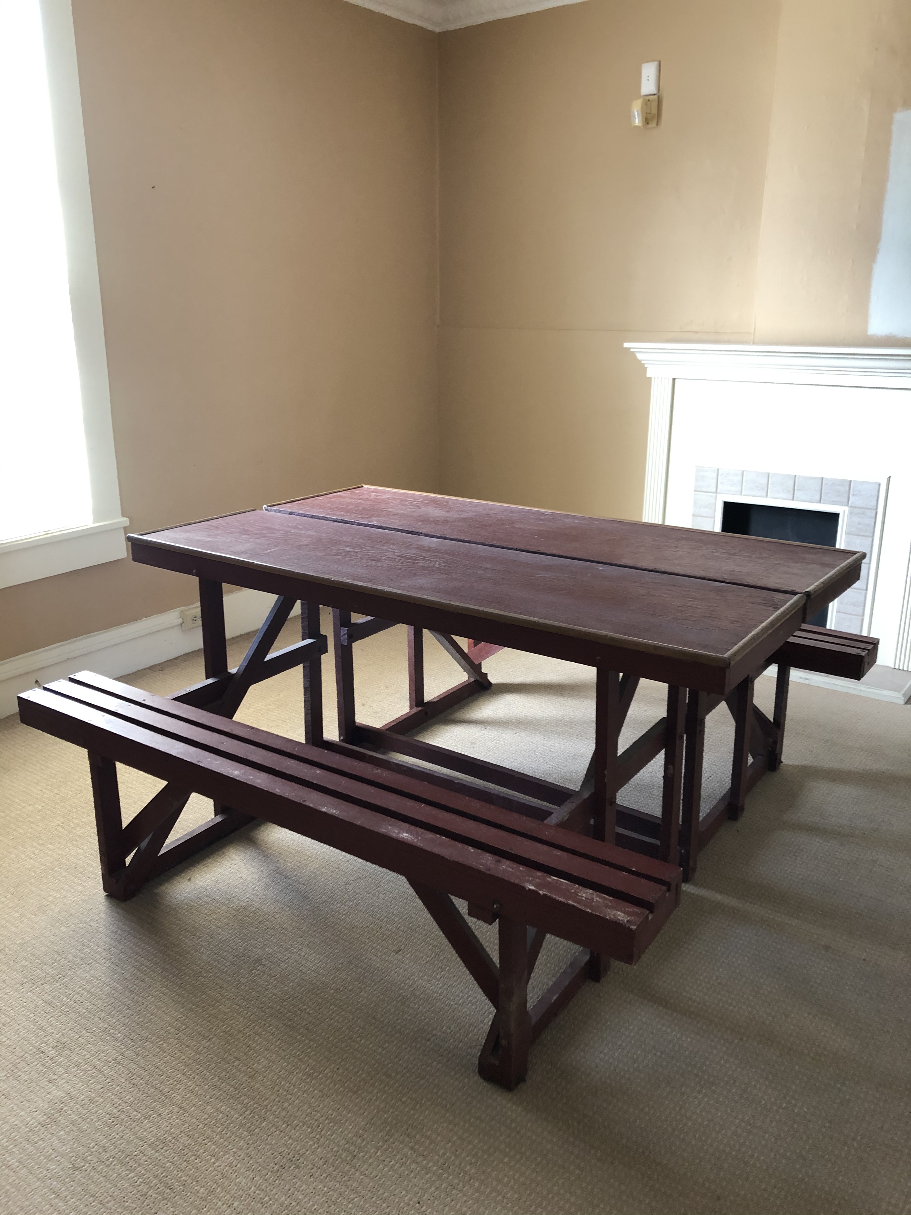 The very last item offered was the one the auctioneer was using as his desk. It was an old picnic table in two half’s with benches attached. She was the only one who bid on it and so of course she got it! A table a table a table!!!!!