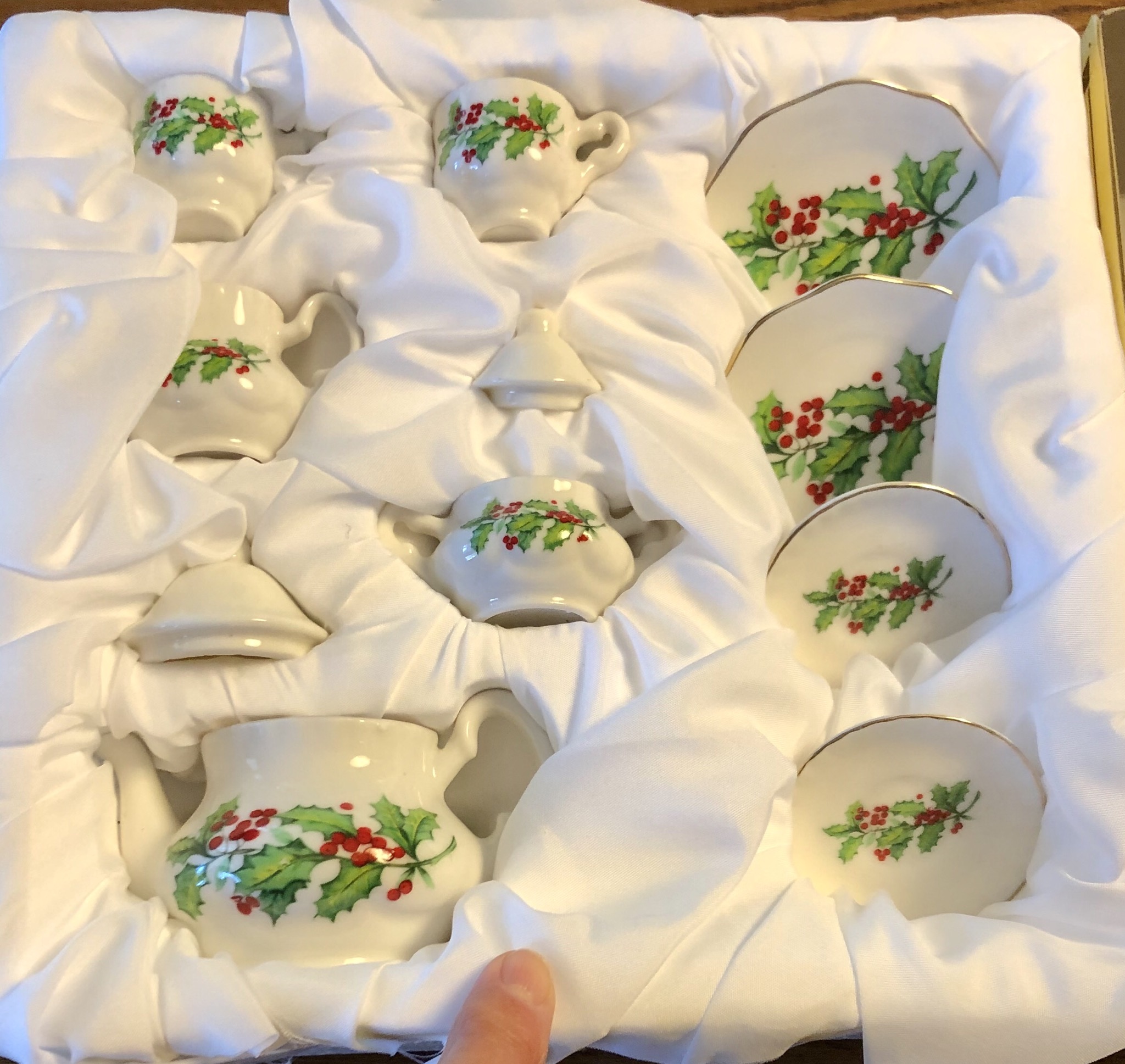The best of all though was a dolls china tea set. Dad found it and herself nearly fainted when she saw the name!