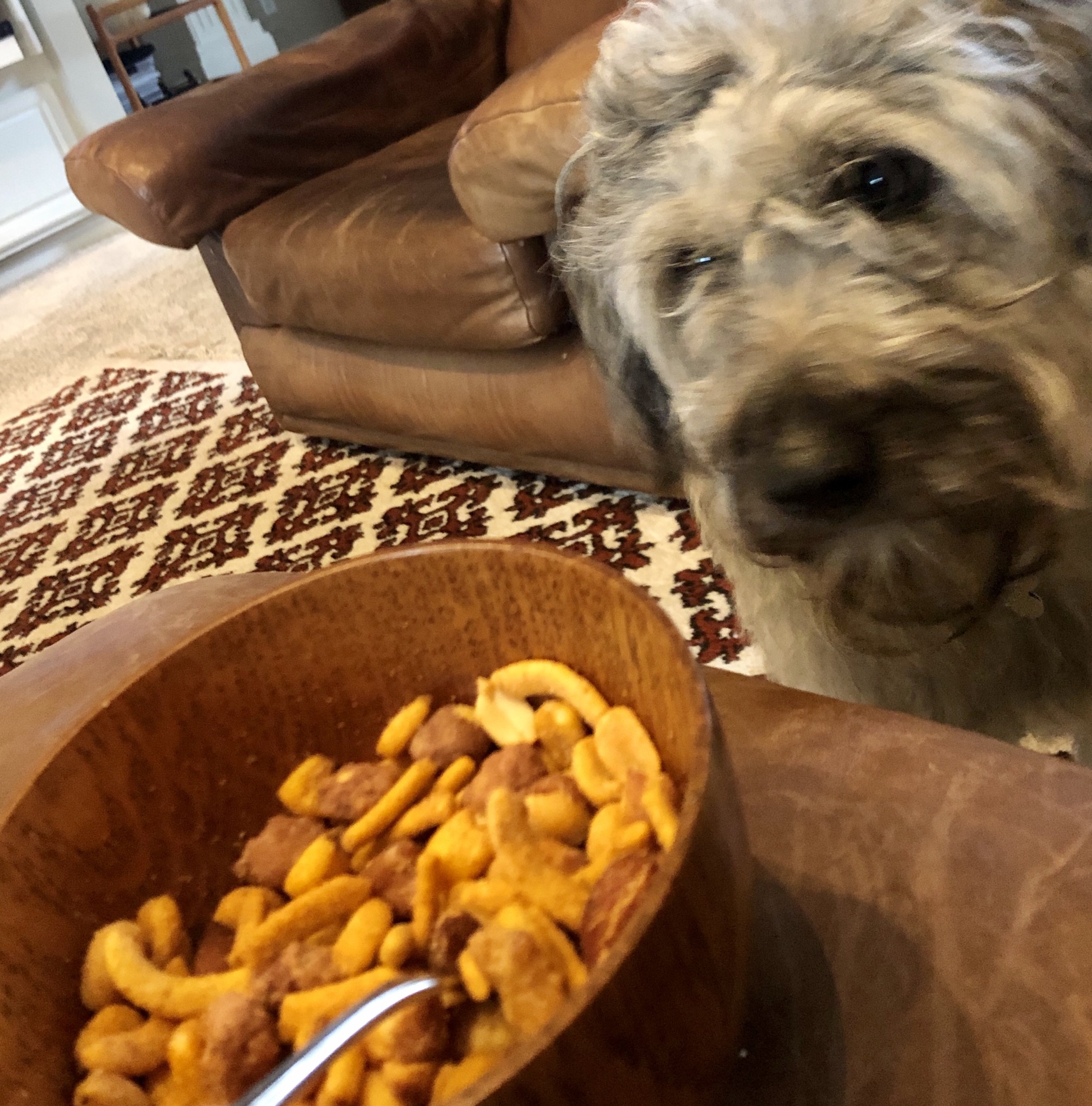 Mother has taken to the snacks early tonight. She usually saves the munching for after dinner but she is stressed and needed spice! Absolutely nothing to do with storms at least not the heavenly type.