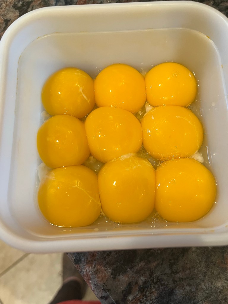 However, she then took to breaking eggs and separating them one by one. It went on and on. I looked at her with my most inquisitive eye and she explained.